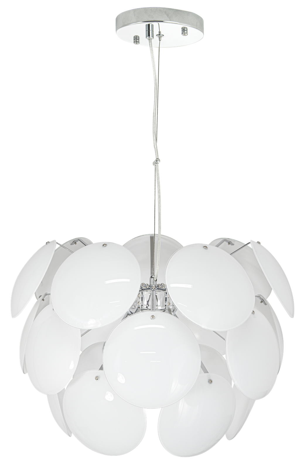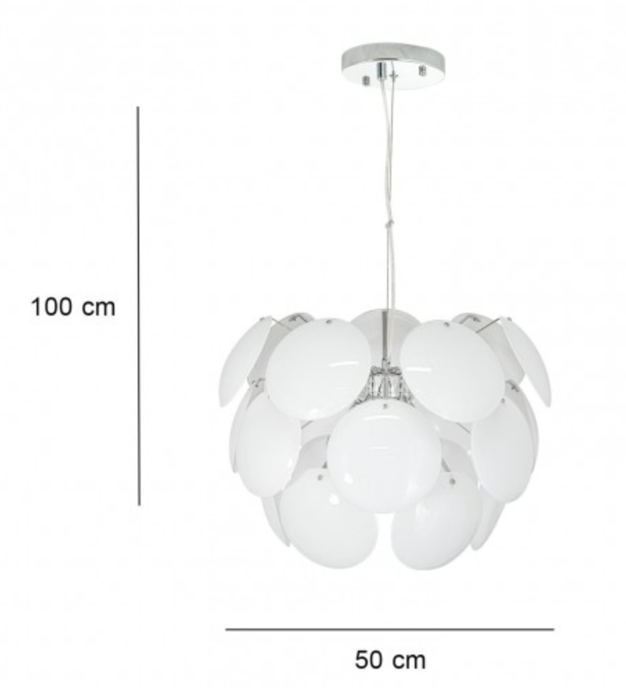 ,Metalowa lampa, wykonana z najwyższej jakości materiałów, która odznacza się aktualnymi trendami na rynku z nowoczesnym i stylowym wyglądem, który uczyni wnętrza wyjątkowymi. Lampa wykonana z metalu w kolorze chromu. Klosz wykonany z białego szkła. Lampa idealnie pasuje do: pokoju dziennego, młodzieżowego, salonu, jadalni, kuchni czy gabinetu, a dzięki swojemu designowi idealnie wtapia się w nowoczesne i klasyczne wnętrza.
