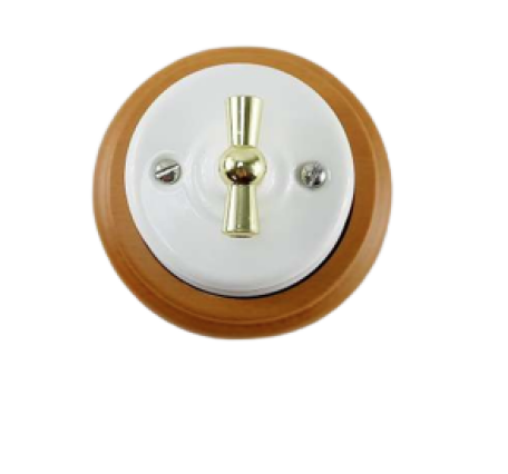 Włącznik ceramiczny obrotowy natynkowy pojedynczy biały ze złotym pokrętłem