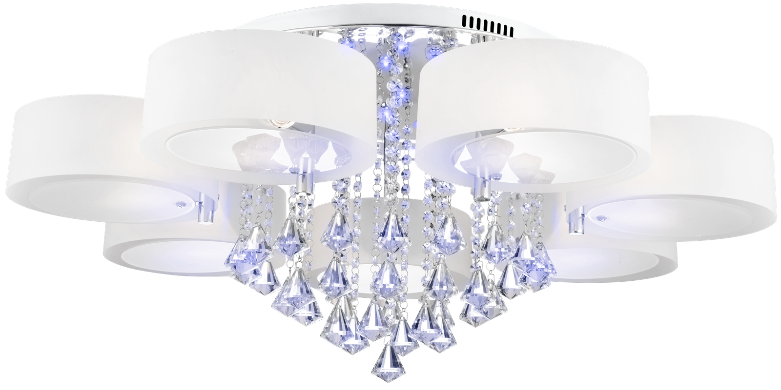 ,Elegancja a zarazem funkcjonalna lampa sufitowa, plafon ANTILA. Okrągłe klosze świetnie współgrają z chromowanym wykończeniem podsufitki oraz zwisającymi kryształami. Dołączony do zestawu pilot pozwala samodzielnie wybrać rodzaj światła jaki w danej chwili chcemy użytkować. Pozwala on na włączenie samych żarówek, samych ledów, obu źródeł światła jednocześnie oraz zmianę barwy światła led. Żarówki 7xE27 należy dokupić.