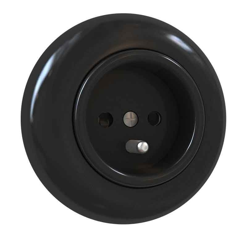 Gniazdo podtynkowe z uziemieniem czarne z ramką Retro
