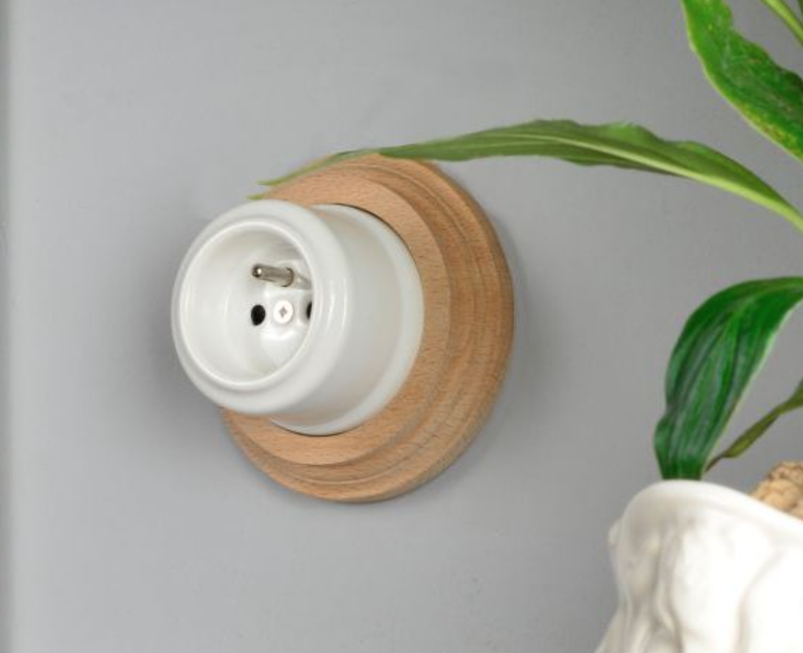 ,Elegancka ramka z naturalnego drewna do ceramicznych gniazd i włączników natynkowych. Drewniane elementy wykończenia wnętrz w połączeniu z ceramiką, wykonane w stylu retro, zadowolą najbardziej wymagających konsumentów. Drewno nadaje całości niebanalnego i naturalnego wyglądu, nadając nowoczesnym modernistycznym aranżacjom, szczyptę klasycyzmu i prostoty.