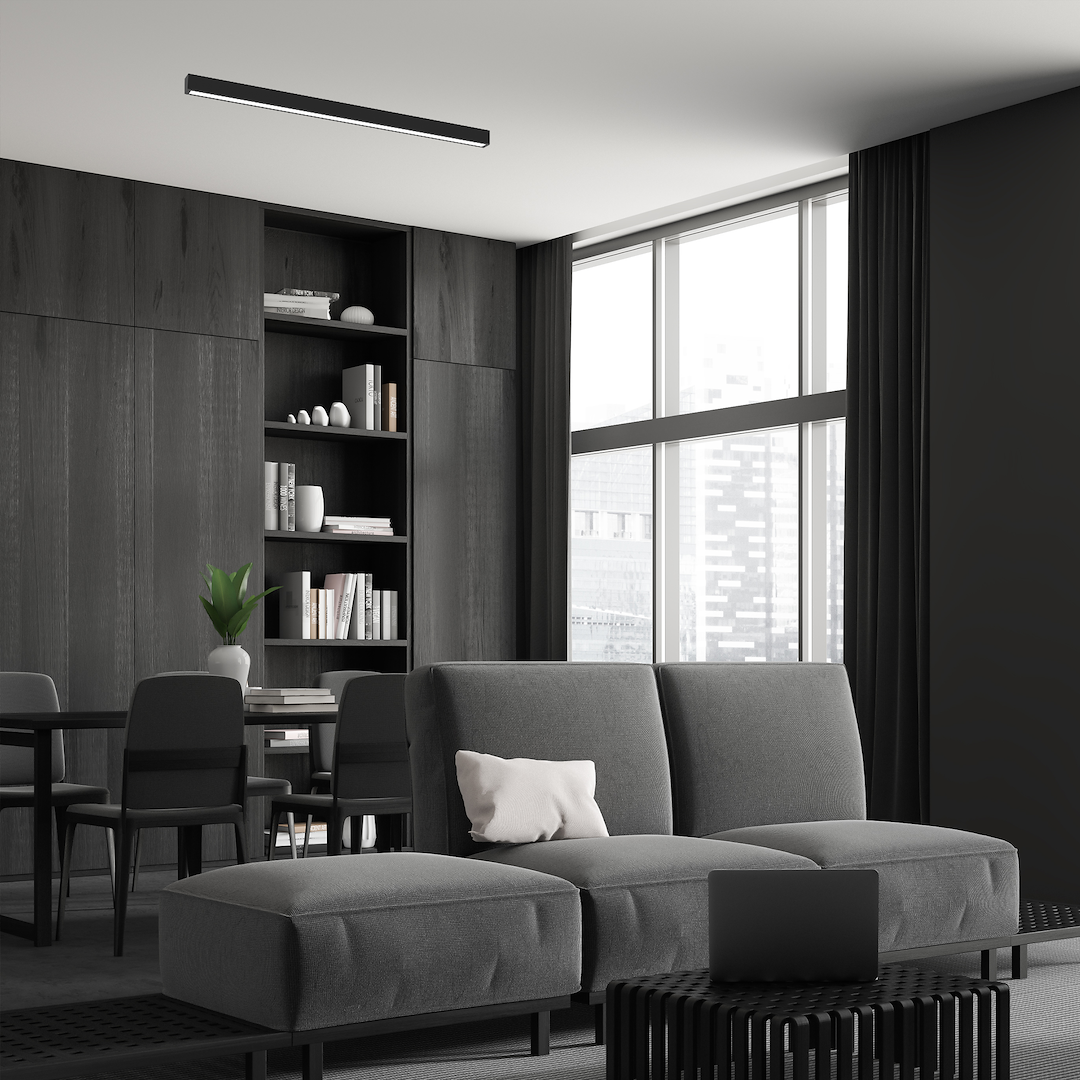 Sufitowe lampy podłużne - rozwiązanie nie tylko dla biur Do niedawna utożsamiane wyłącznie z pomieszczeniami biurowymi podłużne lampy LED zyskały odmieniony design dzięki czemu, stanowią elementy dekoracyjne nowoczesnych pomieszczeń. Kolekcja lamp Lungo to propozycja dla osób, które cenią sobie minimalizm i elegancję czarnych akcentów w domu. Domowe biuro, jadalnia czy kuchnia - pomieszczenia te stanowią idealne miejsce dla nowoczesnych, podłużnych plafonów sufitowych i podłużnych zwisających lamp, które składają się na kolekcję Lungo. Poznaj bliżej je wszystkie! Czarne lampy LED - poznaj kolekcję Lungo Kolekcja Lungo to 4 różniące się między sobą rozmiarami podłużne lampy sufitowe. Składają się na nią 2 plafony oraz 2 lampy wiszące, których wysokość możesz dowolnie regulować według własnych potrzeb. Czarny odcień i minimalistyczny kształt doskonale wpisuje się w wystrój nowoczesnych, industrialnych wnętrz. Wiszące lampy podłużne Lungo świetnie rozświetlą przestrzeń roboczą blatu lub stół jadalniany. Uniwersalność kolekcji Lungo pozwala wykorzystywać ją w pomieszczeniach o różnorodnym przeznaczeniu. Świetnie sprawdzi się zarówno w Twoim domu, jak i w biurze, gdzie wysoka jakość oświetlenia, jaką zapewniają lampy LED, jest szczególnie istotna dla efektywnej pracy i zdrowia naszych oczu.