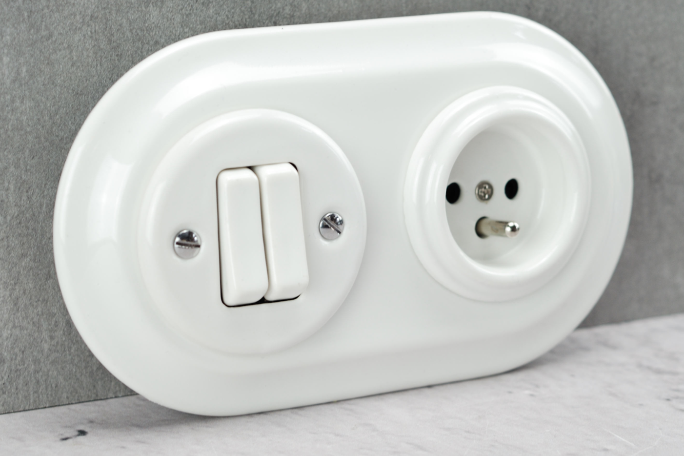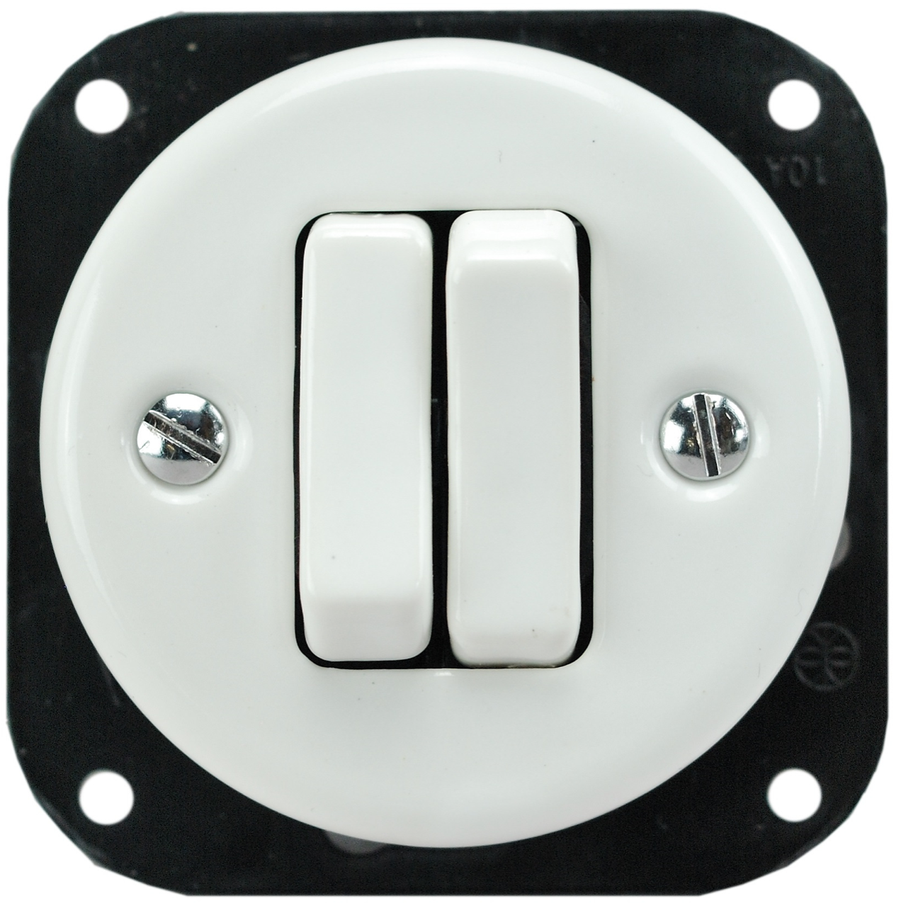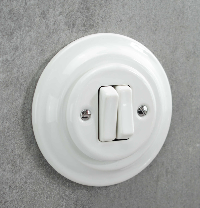 Włącznik ceramiczny podwójny schodowy podtynkowy biały Retro bez ramki