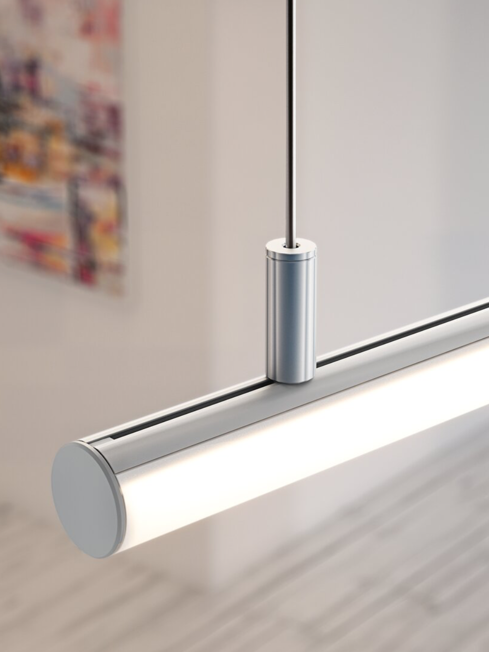 ,Profil JAZ przeznaczony do budowy opraw głównie wiszących. Przekrój oprawy wykonanej z profilu JAZ wraz z wmontowaną do niego osłonką ma kształt okrągły. Oprawa wykonana z profilu JAZ ma za zadanie świecić dużą powierzchnią osłonki (kąt świecenia to około 180 stopni). Element aluminiowy proporcjonalnie do całej oprawy, przy najmniejszym możliwym gabarycie mieści dwa paski LED o szerokości 10 mm. Do profilu dedykowana jest przesłona i zaślepka JAZ. Montaż w podwieszeniu, za pomocą dedykowanych akcesoriów. Możliwość łatwego łączenia w ciągi i systemy.