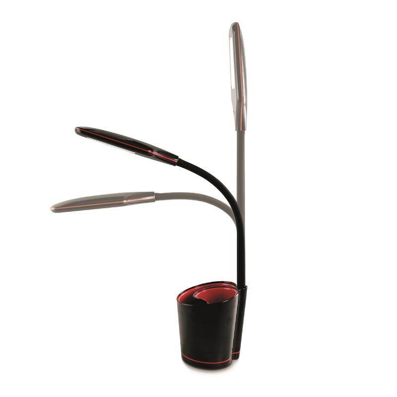 ,Lampka biurkowa LED z przybornikiem. Skierujesz światło w wybranym kierunku dzięki elastycznej konstrukcji. Wbudowany przybornik sprawi że wszystko będziesz mieć pod ręką. Zapewnisz sobie komfort użytkowania dzięki dotykowemu włącznikowi. Wybierzesz odpowiednie natężenie światła dzięki 3-stopniowej skali jasności.