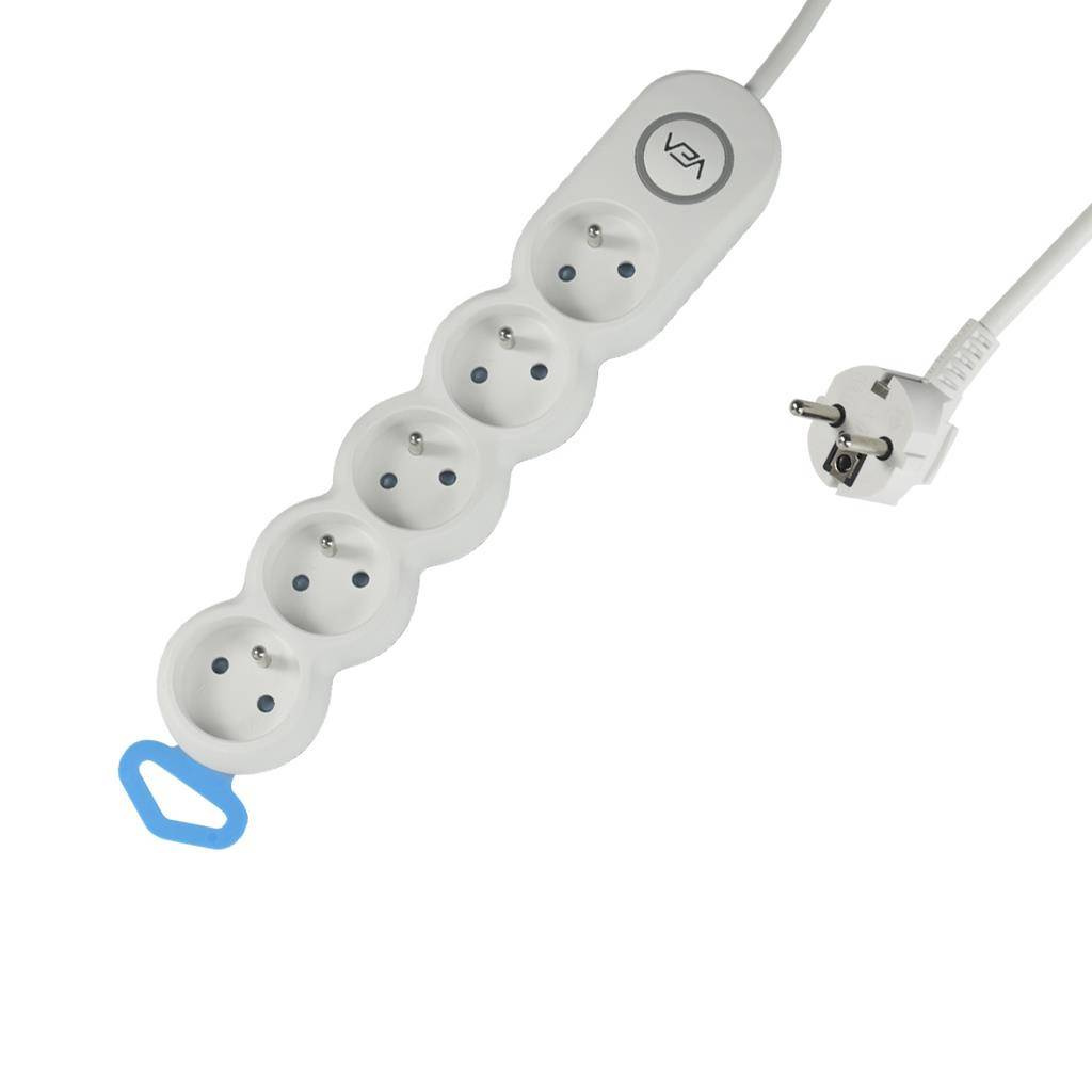 Przedłużacz 5G 1,5m z uziemieniem, z wyłącznikiem, okrągłe gniazda, biały ELEKTRO