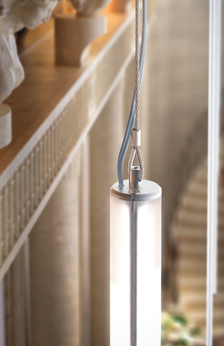 ,Profil JAZ-DUO przeznaczony do budowy opraw głównie wiszących. anodowany przeznaczony jest do tworzenia aranżacji świetlnych w dużych, wysokich pomieszczeniach. Wyróżnia się dwukierunkowym świeceniem (dwustronna linia światła), rozbudowanym systemem akcesoriów dodatkowych oraz nieograniczonym montażem w pozycji pionowej, poziomej oraz ukośniej. Produkt przystosowany został do pasków LED o szerokości 14 mm. Montaż na linkach i prętach przewodnikowych, za pośrednictwem zaślepek. Dwa kierunki świecenia, niemal niewidoczne elementy aluminiowe, szeroki kąt świecenia, okrągły przekrój oprawy oraz szeroka gama akcesoriów.
