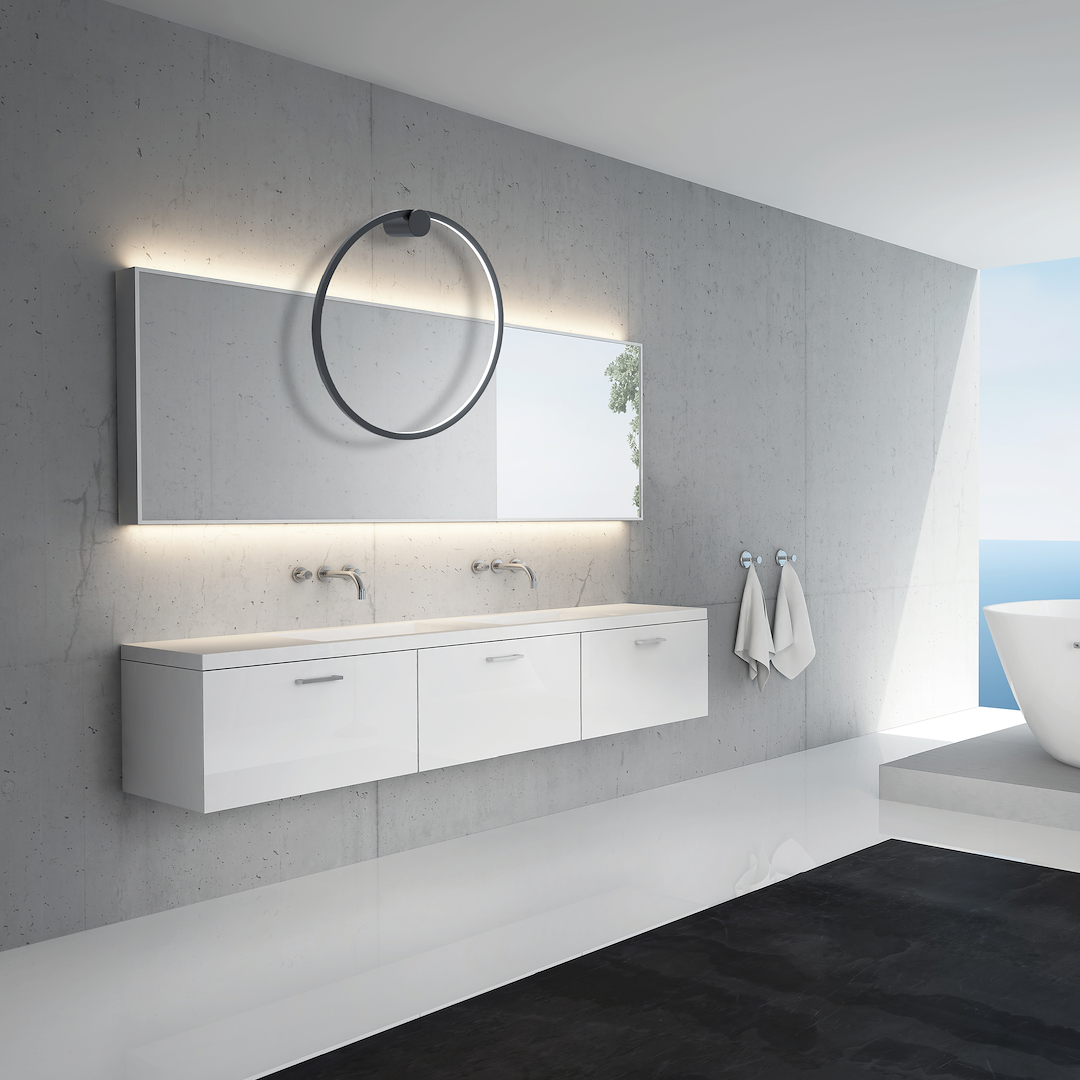 Na kolekcję lamp Saturno składają się lampy pierścieniowe ścienne oraz wiszące. Modele lamp Saturno znajdziesz nie tylko w dwóch wariantach kolorystycznych - matowym złocie i matowej czerni. Oferujemy Ci także różne wielkości ściennych i wiszących ringów ledowych - o średnicy 50 i 80 cm. Ścienne lampy pierścieniowe doskonale dopełnią nowoczesny wystrój łazienki - optycznie powiększą i rozjaśnią przestrzeń. Modele lamp wiszących Saturno to dwie propozycje idealne do różnych pomieszczeń. Ścienne lampy pierścieniowe mogą pełnić funkcję praktyczną i dekoracyjną w łazience czy przedpokoju. Mogą stanowić ramę okrągłego lustra, wpływając na codzienny komfort, kiedy podczas toalety czy wykonywania makijażu potrzebujesz doskonałego oświetlenia.