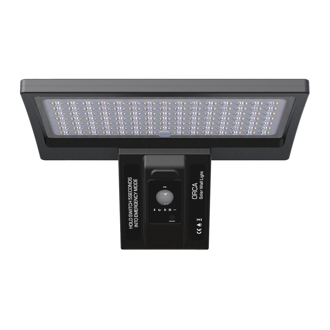 Naświetlacze solarne MILO wykonane są z trwałych oraz wysokiej jakości materiałów, które będą służyć Twoim potrzebom przez lata. Jest wodoodporny, łatwy w instalacji i obsłudze oraz jest wszechstronnym, doskonałym rozwiązaniem dla potrzeb oświetlenia zewnętrznego. Dzięki zastosowaniu soczewek na diodach led, kąt świecenia to 90*140 - daje nam to dużo większe oświetlenie terenu niż diody bezsoczewkowe. Naświetlacz posiada akumulator 5200mAh 3,7V, który do pełnego naładowania potrzebuje 5-6h, a czas pracy zależy od wybranego trybu. Lampa Milo posiada czujnik zmierzchowo-ruchowy i ma cztery tryby pracy, które uruchamiamy poprzez włączenie przycisku głównego: naciśnij raz dioda led mrugnie dwa razy tryb A, kolejne naciśnięcie dioda mrugnie dwa razy tryb B, kolejne naciśnięcie dioda mrugnie dwa razy tryb C, kolejne naciśnięcie wprowadza lampę w tryb awaryjny i w nocy będzie świecić na 30% - czujnik ruchu jest tu wyłączony. Kolejne naciśnięcie powoduje wyłączenie lampy. Zasięg czujnika ruchu: 120° <10m - tryb A – po wykryciu ruchu lampa włącza się na 100% i działa tak przez 20 sekund po czym się wyłączy do kolejnego wykrycia ruchu - tryb B – lampa jest wyłączona za dnia, natomiast po zmroku automatycznie będzie świecić na 30% mocy bez wykrycia ruchu, natomiast po wykryciu ruchu zapala się na 100% mocy, następnie po 20 sekundach bez wykrycia ruchu lampa wraca do 30% swojej mocy - tryb C – lampa jest wyłączona za dnia, natomiast po zmroku automatycznie będzie świecić na 30% - czujnik ruchu jest tutaj dezaktywowany - tryb Awaryjny – dezaktywowany jest czujnik zmierzchu oraz ruchu lampa będzie świecić cały czas na 30% mocy.