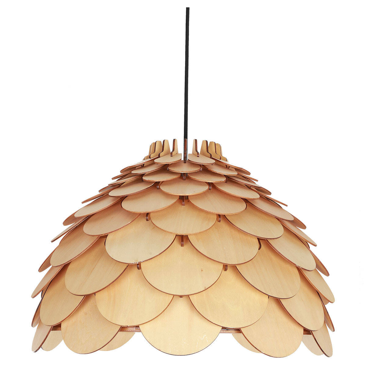 Burgo Lampa wisząca mała to przepiękna, duża lampa wisząca, która na pierwszy rzut oka wyróżnia się swoją budową i stylem. Klosz lampy jest stworzony z drewna, a dokładniej z wielu, cienkich drewnianych elementów, które nakładają się na siebie i ich całość przypomina - łupinę ananasa. Ta niespotykana na co dzień obudowa oświetleniowa, aż prosi się by zawiesić ją w kuchni bądź nad stołem w jadalni. Produkt ten oferuje jedno źródło oświetlenia, a całość wisi na metalowym stelażu. Kolor jest kolorem drewna. Pomieszczenia urządzone bardzo naturalnie, wiejsko bądź boho, będą najbardziej odpowiadały lampie Burgo. Z pewnością pięknie oświetli otoczenie i nada pięknego klimatu. Występuje jeszcze w większej wersji, co jest świetną wiadomością dla tych, którym marzy się lampa Burgo, a myśleli że nie mogą jej nabyć ze względu na bardzo wysokie i przestronne pomieszczenia.