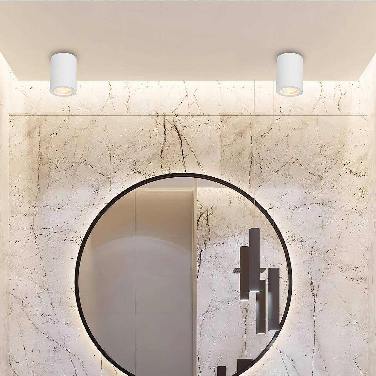Oprawa natynkowa Faro biała IP65 - jest to bardzo malutka bo niespełna dziesięcio-centymetrowa lampka, w kształcie walca. Zbudowana jest z metalu i posiada jedno źródło światła o wejściu GU10. Przystosowana do pomieszczeń o wysokiej wilgotności, jak łazienki czy piwnice, a nawet odpowiednia będzie na obszary zewnętrzne, np. taras. Wszystko to dzięki odporności IP65, który mówi nam, że lampa jest wodoodporna oraz chroniona przed pyłem. Ten minimalistyczny design, w klasycznym kolorze bieli, rozświetli i umili wybrane punkty pomieszczenia. Świetnie sprawdzi się koło lustra lub w okolicach garderoby. Najbardziej wpasuje się w klimaty nowoczesne i modernistyczne. Jeśli chodzi o najlepsze tło do białej oprawy Faro, to będzie to biel, czerń, granat oraz butelkowa zieleń.