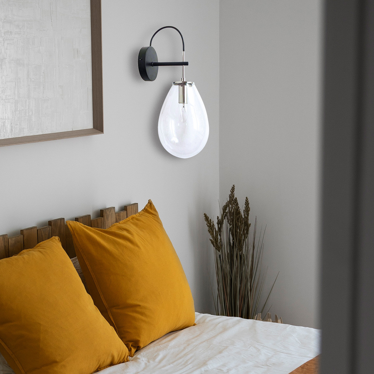 Fondi kinkiet - to prześliczna forma oświetlenia, przypominająca kroplę wody. Dlatego świetnie będzie prezentowała się, jako dodatkowe oświetlenie w łazience, toalecie czy kuchni. Kinkiet Fondi, jest średniej wielkości. Zamontowany jest na metalowym, czarnym stelażu, wygiętym w pałąg ku dołowi. Zakończony jest przezroczystym kloszem, w kształcie kropli, przez który pięknie przebija się blask światła. A źródło światła jest jedno, w postaci żarówki - E14. Kinkiet Fondi, spodoba się każdemu, kto lubi niebanalność i nietuzinkowość w swoim otoczeniu. Styl lampy jest klasyczny ale też nowoczesny i pobudzający wyobraźnię. W większej ilości, z całą pewnością stworzy przepiękną iluminację świetlną. Kolorystycznie pięknie będzie się prezentować stonowanych aranżacjach, jak szarość, czerń, biel czy granat.