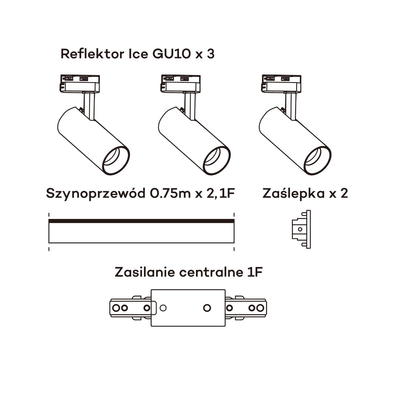 Ice set 1f biały - jest to zestaw nowoczesnego oświetlenia dla Państwa wnętrz! Zestaw składa się z szynoprzewodu jednofazowego, oraz z trzech reflektorów, które są stworzone właśnie do szynoprzewodów Naszej firmy. Przy tych produktach oświetleniowych, bezsprzecznie może ponieść wyobraźnia! Dlaczego? A no dlatego, że zestawy te, można dowolnie łączyć i konfigurować. Każdy z białych, metalowych, reflektorów posiada jedno źródło światła - czyli trzy. Dodatkowo, klosze można indywidualnie nakierować na dane miejsce, które chcemy oświetlić. Oczywiście wizualna nowoczesność setu Ice, najlepiej będzie prezentował się w większych salonach, czy przestronnych kuchniach w modernistycznym wydaniu! Gdyby kolor czarny Państwu nie odpowiadał, to mamy do zaoferowania jeszcze kolor czarny. Serdecznie zapraszamy, do obejrzenia także innych ofert.