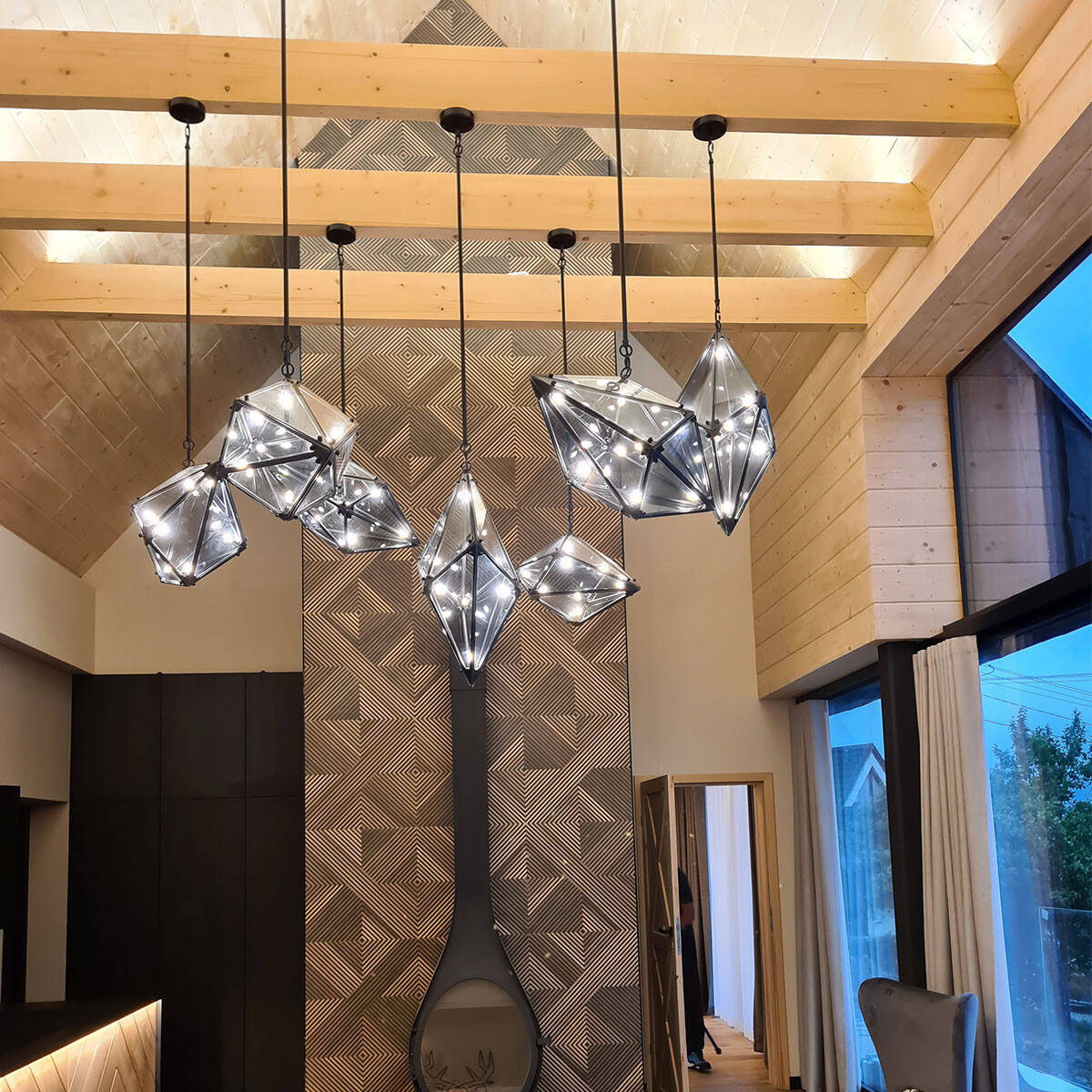 ,Konstelacja pionowa to elegancka lampa wisząca, która łączy w sobie nowoczesny design z funkcjonalnością. Jej asymetryczny kształt doskonale wpisuje się w aktualne trendy aranżacyjne, idealnie pasując do sufitów o nietypowych formach. Czarny, przydymiony kolor Konstelacji pionowej sprawia, że jest ona uniwersalnym dodatkiem do wielu aranżacji. Lampa nie tylko oświetla przestrzeń, ale także dodaje jej wyjątkowego uroku. Zestawiając Konstelację poziomą z Konstelacją pionową, możesz stworzyć efektowny zestaw, który z pewnością przyciągnie wzrok i podkreśli charakter wnętrza.