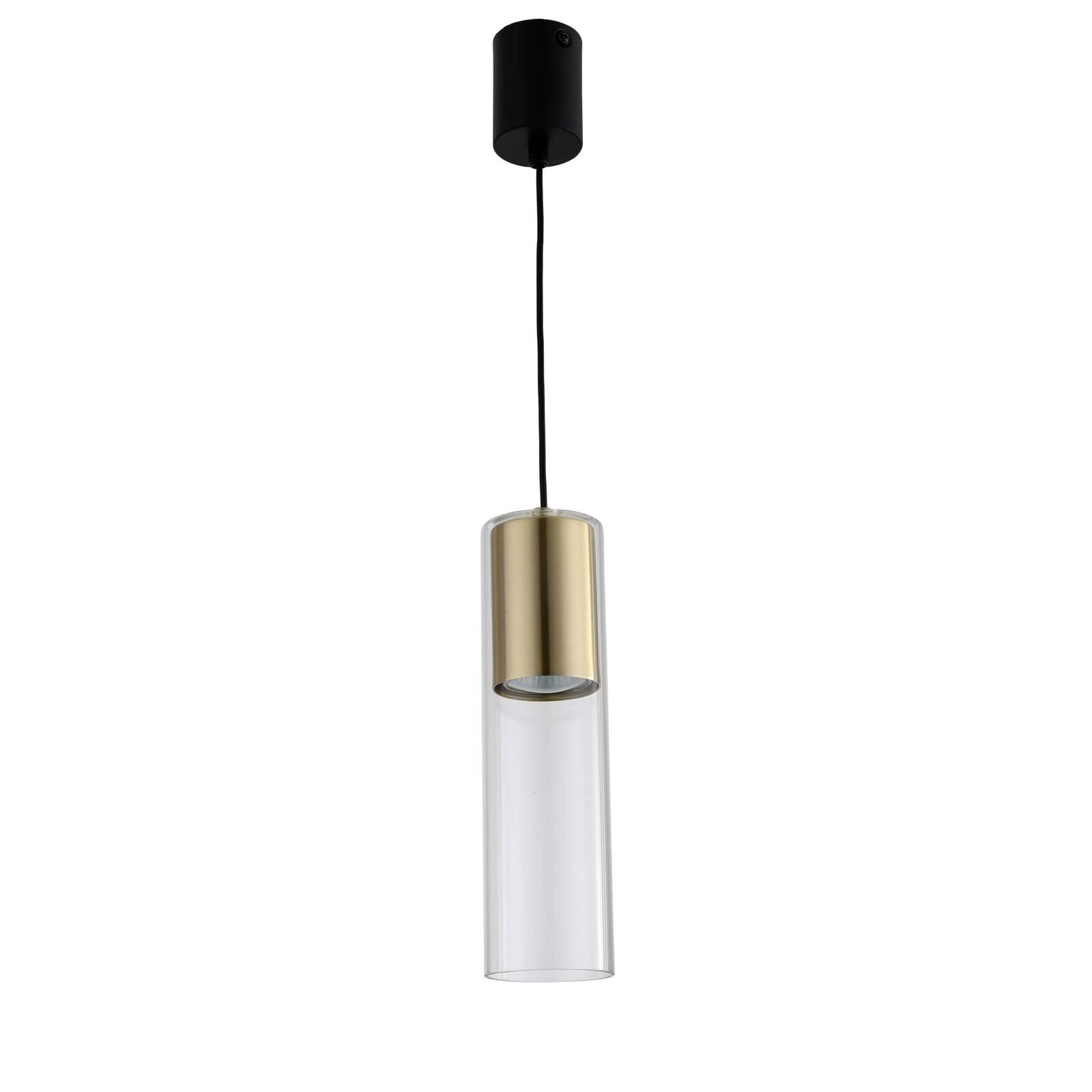 Materiał i kolorystyka: Lampa wykonana jest z metalu w złotym wykończeniu, co nadaje jej nowoczesny wygląd. Główna część oprawy to przezroczysta szklana tuba, która dodaje konstrukcji delikatności.