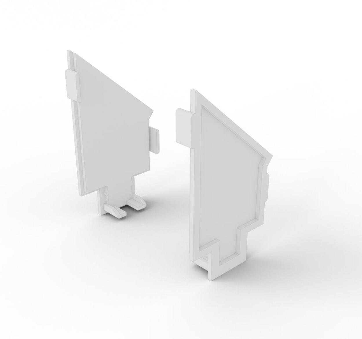 Zapewnia estetyczne wykończenie i zabezpieczenie wnętrza oprawy. Montaż do profilu, na wcisk. Zestaw zawiera 2 zaślepki (lewą i prawą).