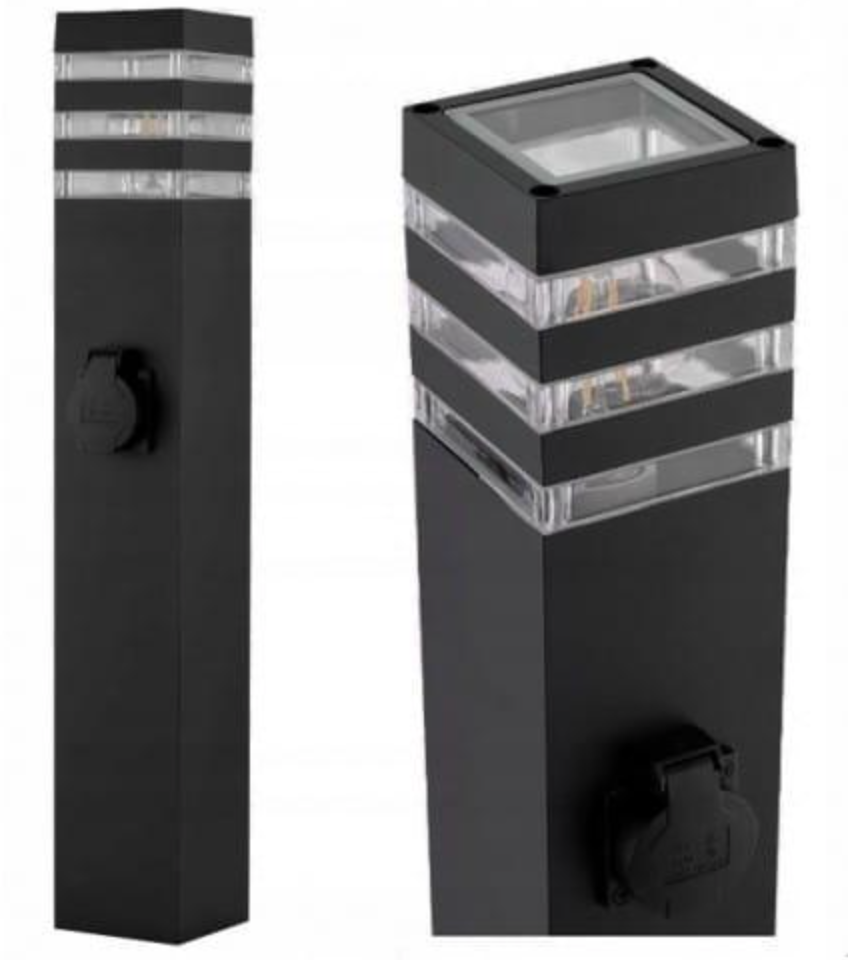 Lampa ogrodowa stojąca MALIBU 1xE27 czarny kwadrat 60cm z gniazdem