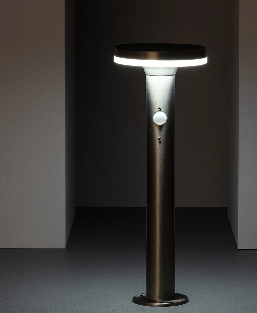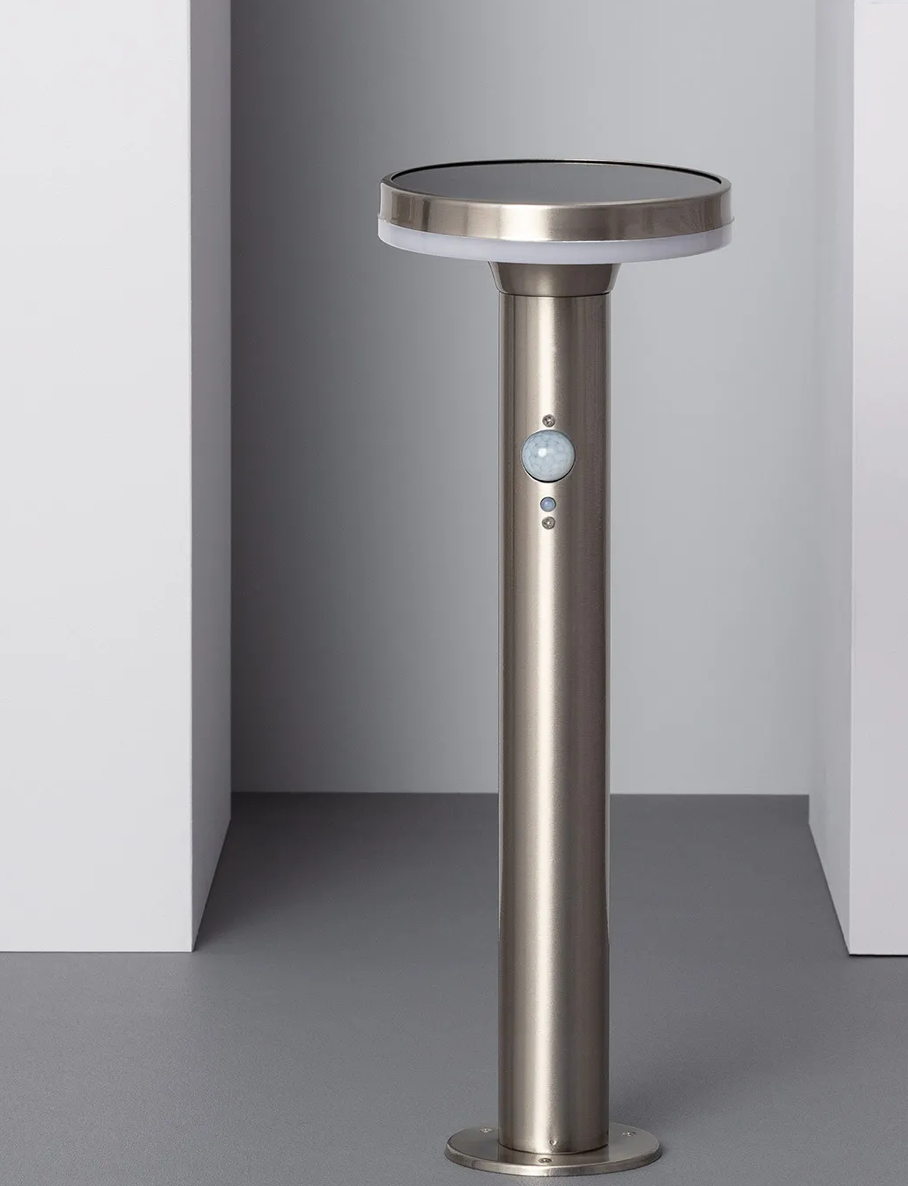 Słupek ogrodowy solarny LED Helios Inox z Czujnikiem Ruchu PIR 45cm