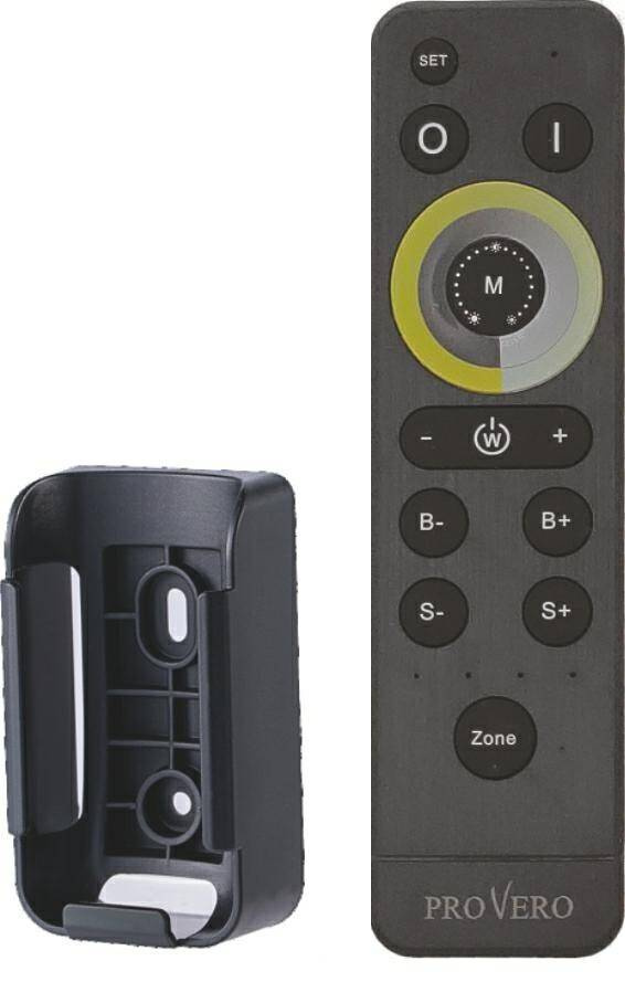 ,Pilot DIM/CCT 4-strefowy Volta pozwala na sterowanie jasnością taśm jednokolorowych oraz na zmianę temperatury barwowej CCT pomiędzy barwą białą ciepłą oraz białą zimną. Ma możliwość sterowania aż czterema odrębnymi strefami, do których można zaprogramować także dodatkowe punkty świetlne.
