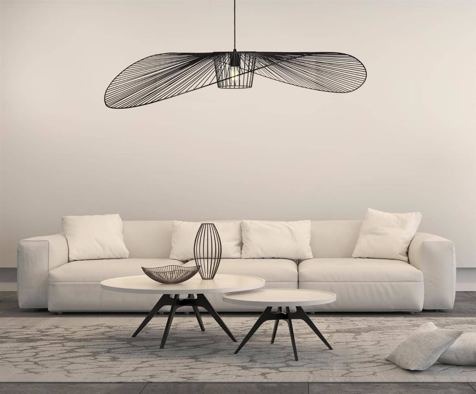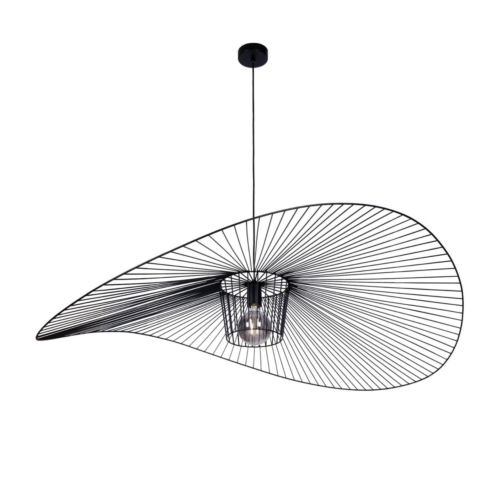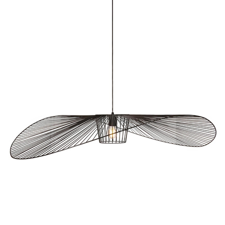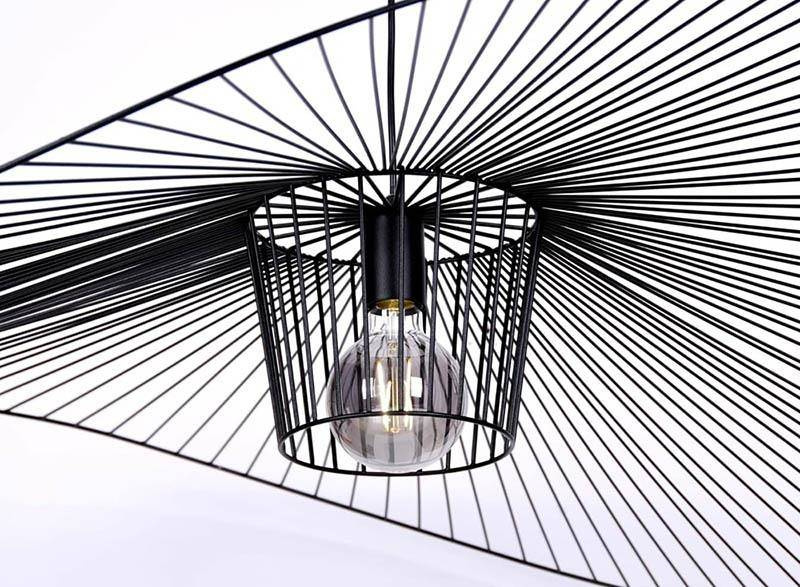 Żyrandol został wykonany z metalu i zachowany w klasycznej, matowej czerni. Stonowana kolorystyka nadaje mu elegancji i sprawia, że posłuży na lata użytkowania, bez względu na zmieniającą się modę. Uniwersalny design pozwala na zastosowanie go w każdym wnętrzu, gdzie stanie się głównym elementem dekoracyjnym, obok którego nikt nie przejdzie obojętnie. Nie bez podstaw żyrandol jest przez nas nazywany kapeluszem. Wygląda jak propozycja nakrycia głowy dla eleganckiej kobiety, która wybiera się właśnie na plażę i zależy jej na skutecznej ochronie przed słońcem. Nasz kapelusz nie osłoni nikogo przed słońcem, gdyż posiada ażurową budowę, ale funkcję oświetleniowo-ozdobną spełni idealnie!