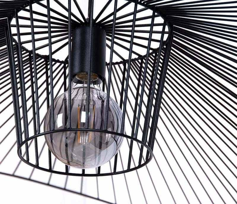 Lampa jest dużych rozmiarów - jego średnica to 120 cm a maksymalna długość zwisu - 100 cm. Możliwość regulacji przewodu sprawi, że będziemy mogli dopasować sobie wysokość zawieszenia według naszych preferencji oraz warunków architektonicznych pomieszczenia. Produkt został wyposażony w jedno źródło światła z uniwersalnym gwintem E27. Niczym nieosłonięty sprawi, że emitowane promienie doświetlą idealnie nasze przestrzenie. Otwarta budowa klosza stwarza możliwość zastosowania efektownej żarówki, która dopełni całość kompozycji. Proponujemy zapoznać się z naszą ofertą ozdobnych żarówek i dobrać odpowiednią dla siebie [sprawdź tutaj].