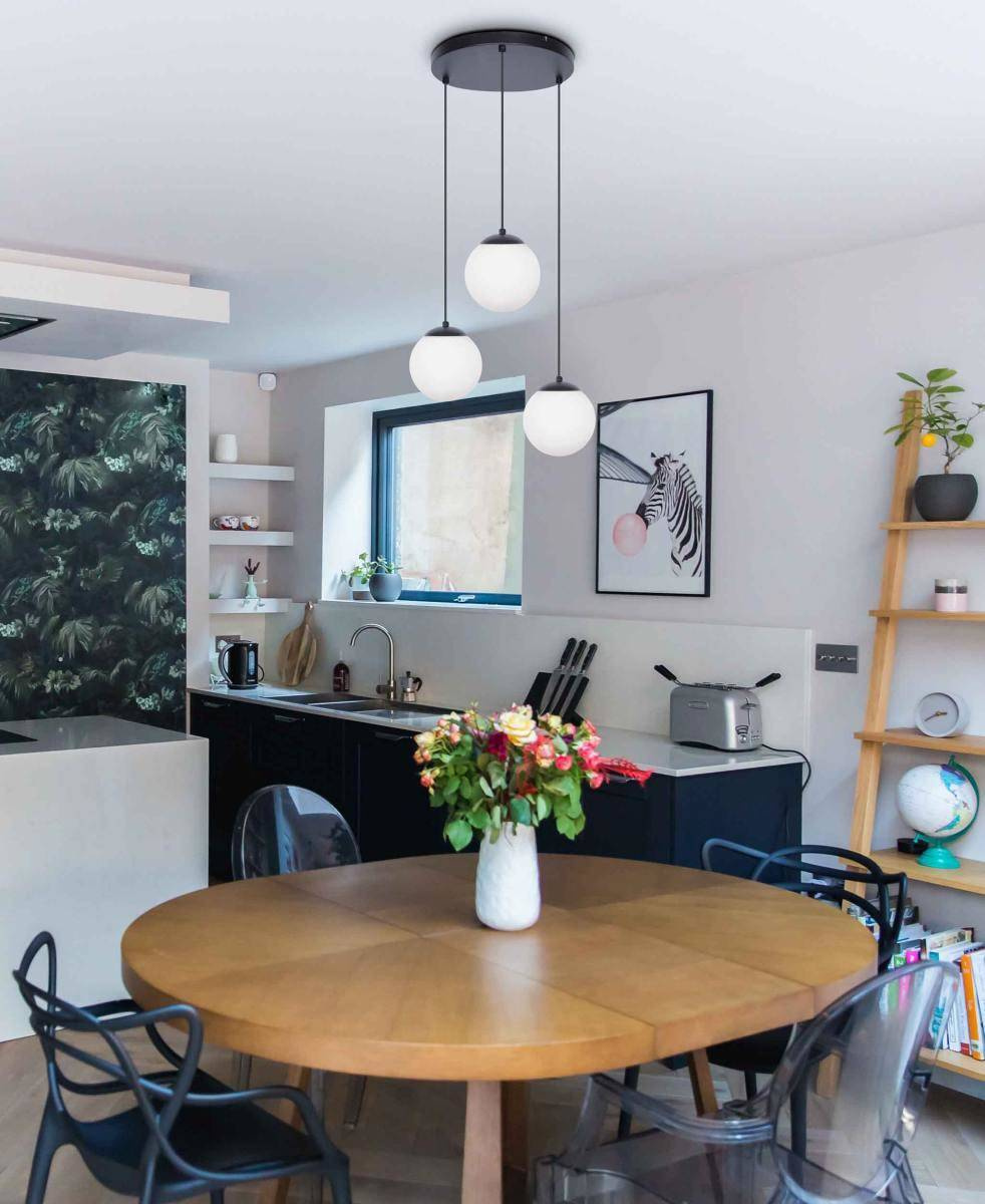 Żyrandol K-4746 z naszej nowej serii CAMINA to idealna propozycja oświetleniowa dla Twojego domu. Trzy punkty światła zostały umieszczone na przewodach, wychodzących z okrągłej podsufitki o średnicy 30 cm.. Każdy ze zwisów ma możliwość regulacji długości, dzięki czemu możesz stworzyć niepowtarzalną kompozycję pod swoim sufitem. Źródła światła osłonięto kloszami o średnicy 16 cm. Dzięki swoim rozmiarom, lampa nie przytłoczy wnętrza, ale nada mu elegancji i nowoczesnego wydźwięku. Całość konstrukcji ma 50 cm szerokości oraz maksymalnie 100 cm wysokości. Lampa takiej budowy sprawdzi się świetnie nad stołem w jadalni bądź wyspą kuchenną. Kształt kaskady podkreśli kubaturę wnętrza o regularnych rozmiarach.