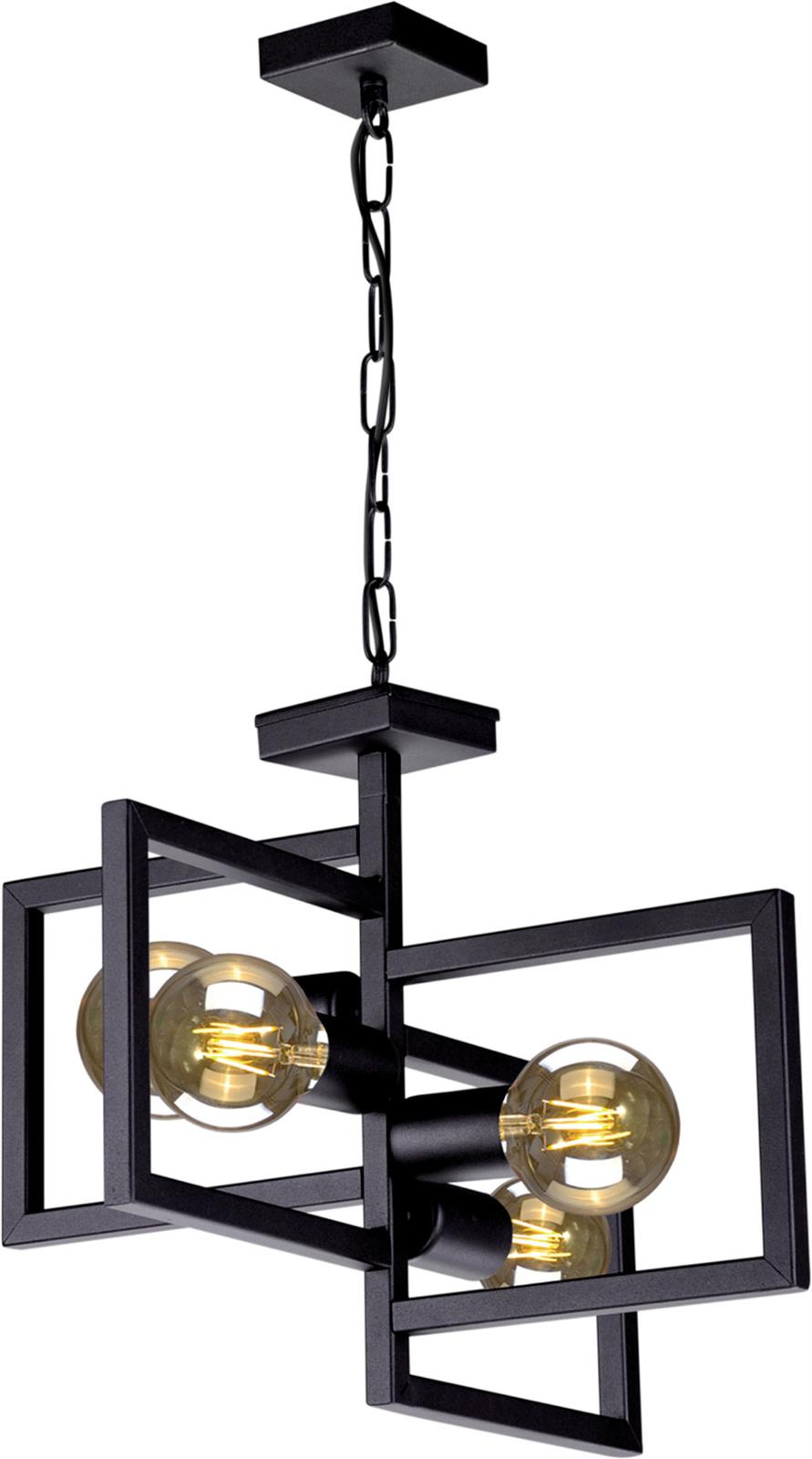 Seria LAVAYA to zdecydowany faworyt wśród lamp loftowych. Cała kolekcja łączy w sobie proste formy i klasykę czarnego koloru. Lampa K-4036 to najbardziej przestrzenna propozycja serii. Na łańcuchu została zawieszona niebanalna kompozycja z metalu uformowana w kwadraty. Wychodzą one z pionowego pręta na cztery jego strony i na różnych jego wysokościach, zaczynając od góry schodkowo opadają ku dołowi. Jest to nietypowy rodzaj klosza, ponieważ punkty światła mamy w pełni widoczne. Całą kompozycję dopełniają dwa elementy kwadratowe - jeden wieńczący klosz, a drugi, identyczny, który pełni funkcję podsufitki.