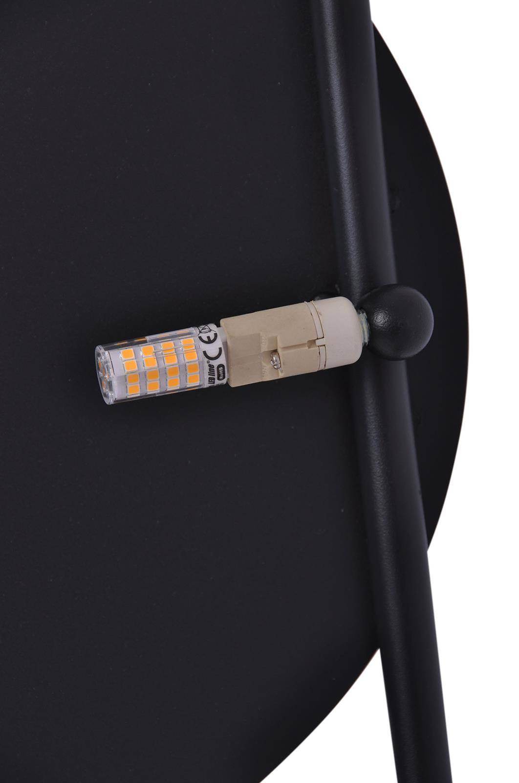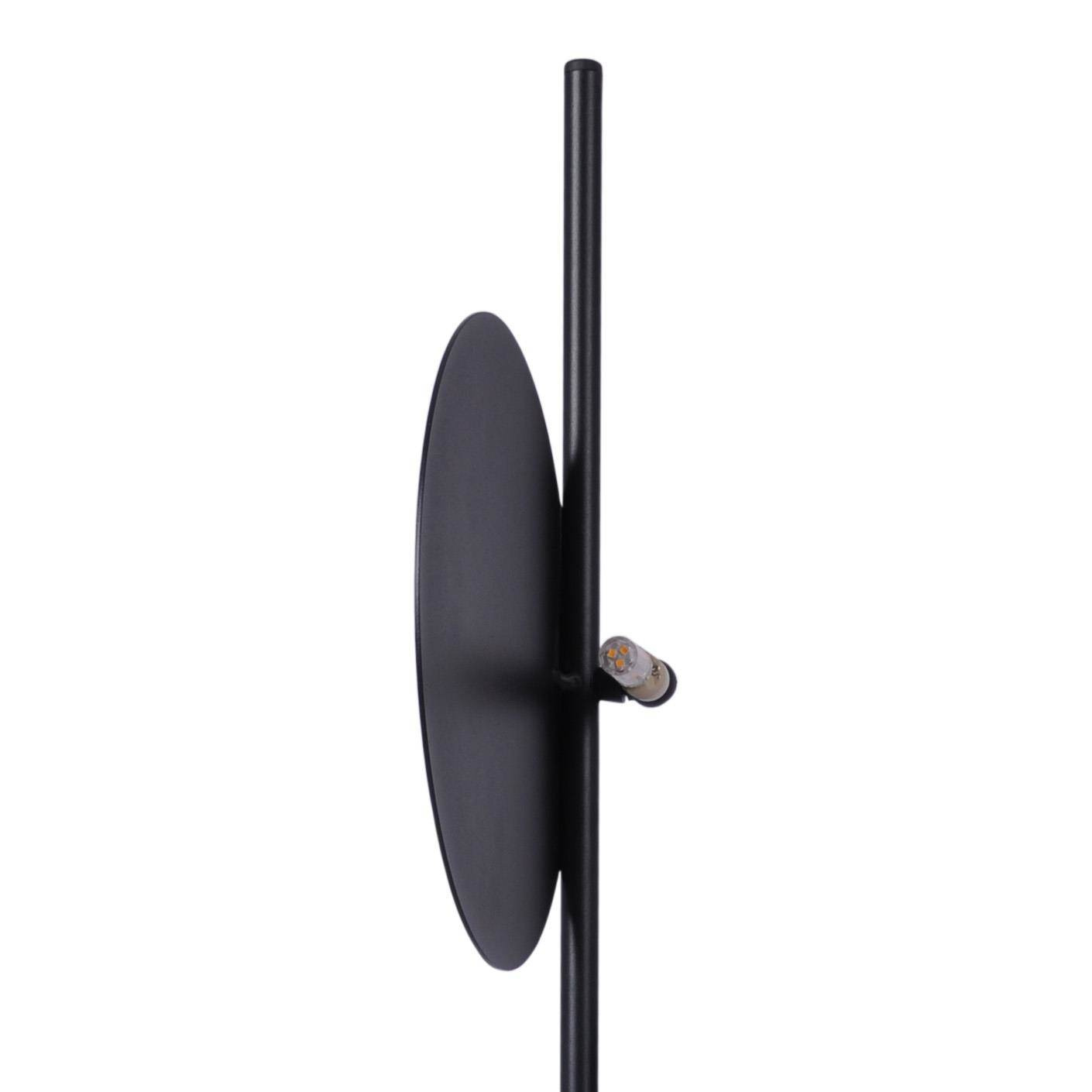Dwie, czarne, okrągłe tarcze o różnych średnicach, zostały zamocowane na prostej rurce. Taki zabieg wprowadza asymetrię w projekcie, dzięki czemu kinkiet staje się jednocześnie dodatkowym źródłem światła i dekoracją. Dwukierunkowo rozstawione źródła światła, które delikatnie wydobywają się zza metalowych tarcz, nadają wnętrzu stylowego charakteru. Prezentowana lampa ścienna będzie się wyjątkowo prezentować zarówno w pionie – jak i poziomie. Dodatkowo zachęcamy do łączenia tego kinkietu z innymi z serii REGA – w ten sposób możesz stworzyć wyjątkową konstelację na całą ścianę!