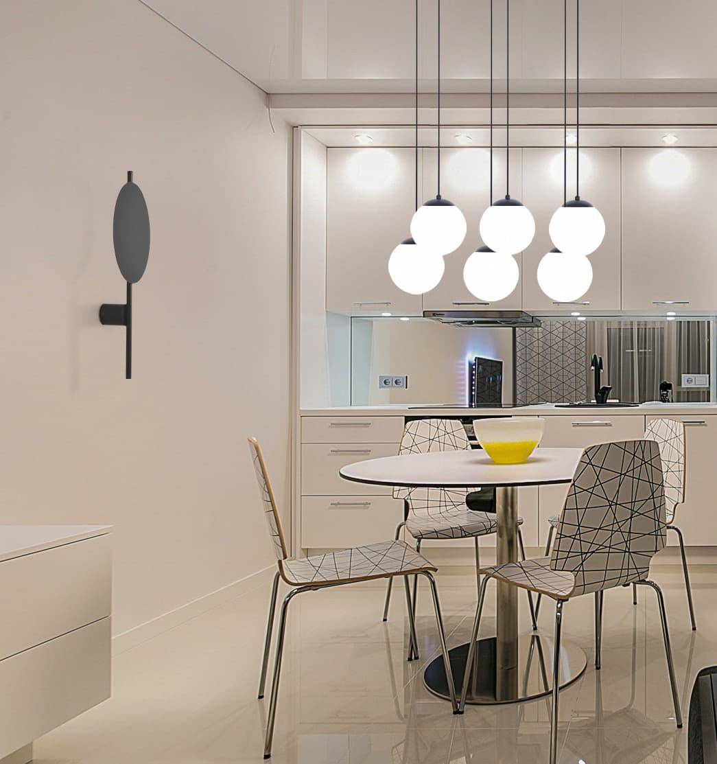 Czarna, okrągła tarcza o średnicy 25 cm zamocowana na pionowej rurce jest idealnym rozwiązaniem dla wszystkich poszukujących oświetlenia, które jest jednocześnie dekoracją. Kinkiet ma miejsce na jedno źródło światła z gwintem G9, dlatego idealnie sprawdzi się jako dodatkowe źródło światła, które będzie odpowiadało za nadanie przytulnego klimatu. Po zmroku łuna światła wydobywająca się zza tarczy przypomina zaćmienie słońca, natomiast w dzień lampa stanowi designerską ozdobę ścienną.