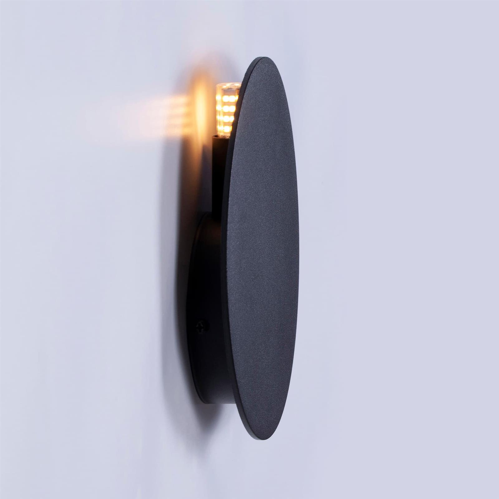 Niewielkich rozmiarów kinkiet (20 x 20 x 4 cm) posiada jeden punkt światła schowany za „kloszem” (jeden gwint G9). Takie umieszczenie żarówki sprawia, że światło nie będzie padać bezpośrednio na pomieszczenie, lecz będzie rozproszone i przytłumione okrągłą, metalową tarczą. Maksymalna moc żarówki, jaką możemy tu zastosować to 20W. Nie jest to duża moc, dlatego kinkiet będzie pełnić funkcję dodatkowego oświetlenia, które nada tajemniczego klimatu we wnętrzu.