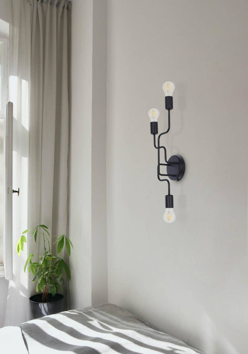 Minimalistyczny kinkiet ścienny K-3896 został zaprojektowany w nurcie industrialnym/ loftowym, który jest obecnie na topie i wróżymy mu długą sławę, jednak sam produkt możesz zastosować do wnętrz w każdym stylu. Lampa składa się z trzech ciekawie giętych ramion zakończonych oprawką na żarówkę z gwintem E27, czyli najpopularniejszym gwintem na rynku. Dzięki czemu model jest niezwykle uniwersalny, co więcej, czarny kolor będzie pasował do każdego wnętrza. Ciekawym zabiegiem będzie wybór żarówek w kształcie innym, niż klasyczny. Mamy też w asortymencie żarówki w stylu retro oraz modern, które wraz z tą lampą zapewnią niezwykły efekt wizualny. Pamiętaj jednak, że moc jednej żarówki nie powinna przekroczyć 60W. W lampie zastosowano podział na dwa włączniki.