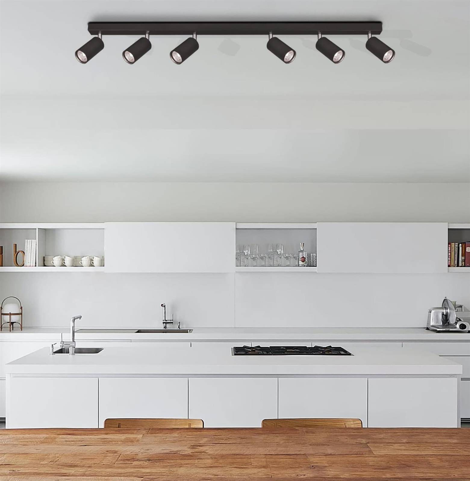 Lampa K-4555 to zdecydowany lider wśród lamp listwowych. Na pręcie o długości 120 cm zamocowano aż 6 źródeł światła. Są one ubrane w eleganckie, czarne osłonki. Punkty światła zostały wyposażone w uniwersalne gwinty GU10. Możemy nimi manewrować na boki, w zależności co chcemy oświetlić i jaki efekt iluminacyjny pragniemy uzyskać. Dzięki wymienności żarówek, będziemy mogli dobrać sobie ich barwę i moc, w zależności od naszych indywidualnych potrzeb i preferencji.