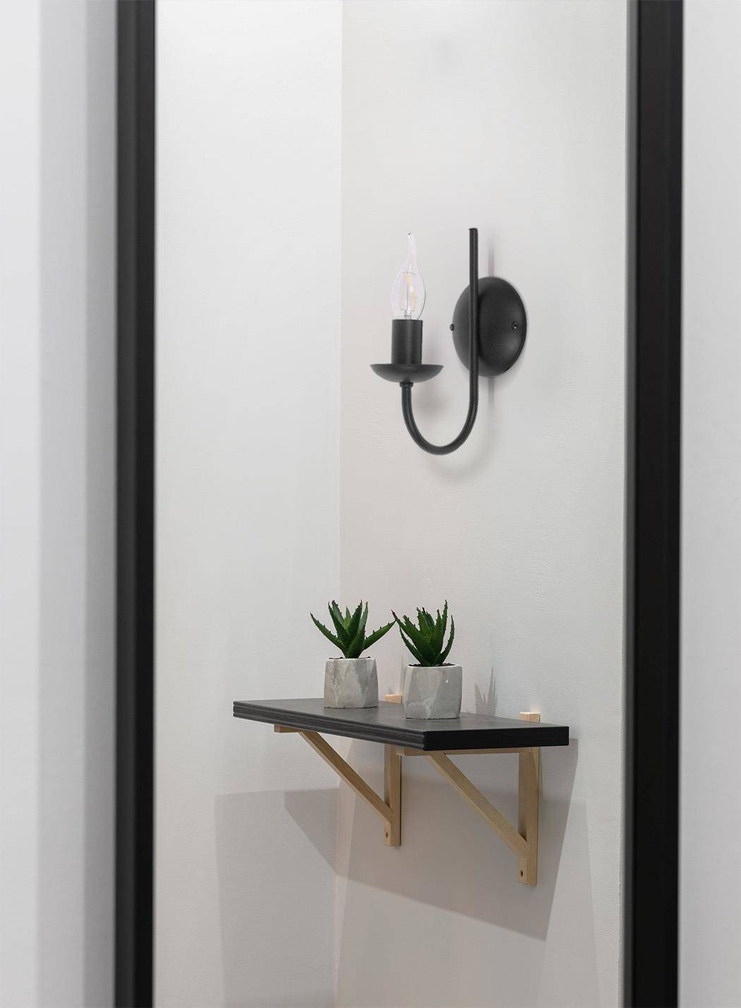 Z pewnością dodatkowy efekt daje zastosowanie stylizowanych uchwytów żarówek, które aby jeszcze bardziej przypominać tradycyjny świecznik, zostały wyposażone w charakterystyczne kołnierze. Ten niepozorny detal, jest ciekawym elementem przełamującym minimalizm oprawy, i doskonale uzupełnia cały projekt.