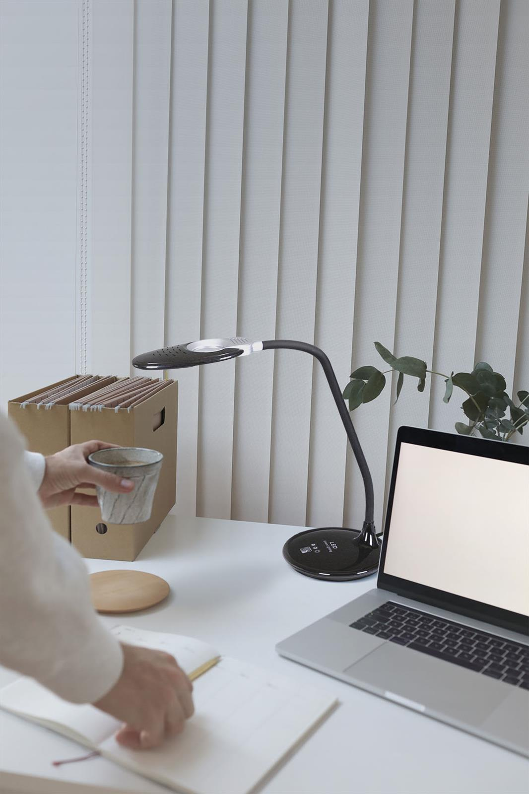 Lampkę biurkową z serii SOLO można określić jako prosty projekt, pozbawiony udziwnień, który ma być przede wszystkim użytkowy. Nie oznacza to jednak żadnych kompromisów w funkcjonalności lampy. Wręcz przeciwnie, posiada ona najważniejsze funkcje w postaci regulowanej nogi i trzystopniowego ściemniacza. Nie bez powodu coraz więcej osób sięga po technologię LED, rezygnując przy tym z tradycyjnego oświetlenia. Proces ten możemy zauważyć już od kilku lat i z biegiem czasu jedynie się nasila. Zintegrowana technologia LED ma kilka znaczących atutów w porównaniu z tradycyjnymi żarówkami. Moduły LED są znacznie bardziej długowieczne niż zwykłe żarówki. Co więcej, w przeciwieństwie do tradycyjnych źródeł światła, LED’y nie nagrzewają się podczas wielogodzinnej pracy, będąc przy tym bardziej energooszczędne. Dają one również bardziej równomierne światło i pozwalają się zamknąć w bardziej kompaktowej obudowie.