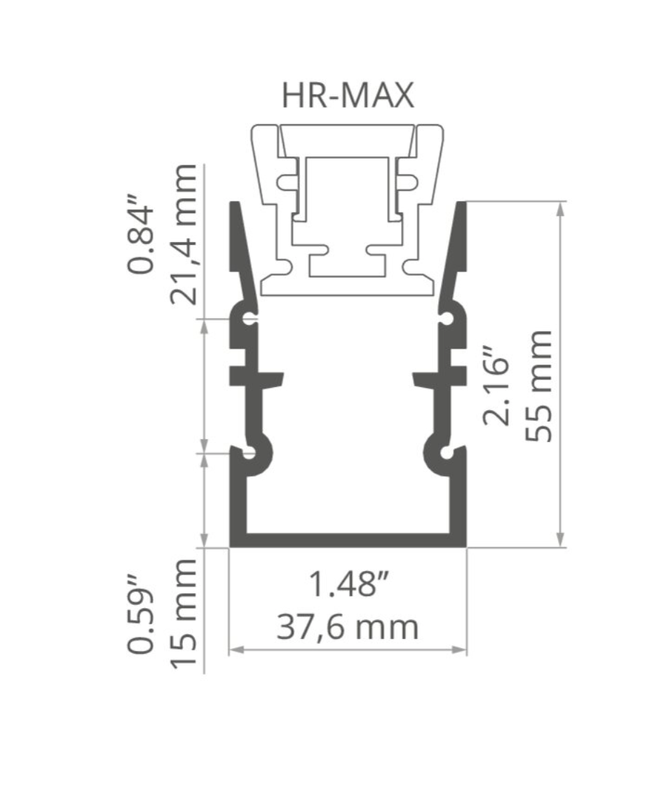 ,HR-MAX-T to listwa montażowa pogłębiona przeznaczona do montażu gruntowych opraw oświetleniowych, zbudowanych z profilu «HR-MAX». Profil techniczny umożliwia łatwy serwis profilu HR-MAX oraz jest kompatybilny z profilem HR-MAX-TW. .