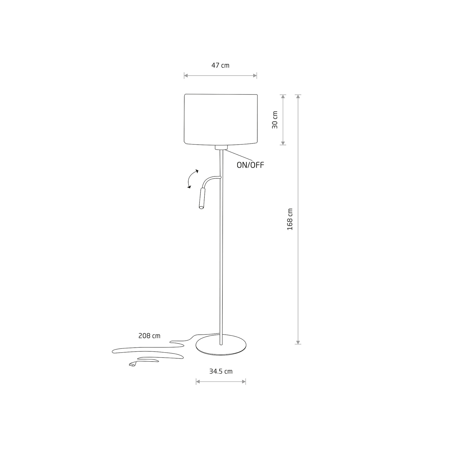 Nowodvorski Lampa podłogowa z lampką do czytania szara HOTEL PLUS
