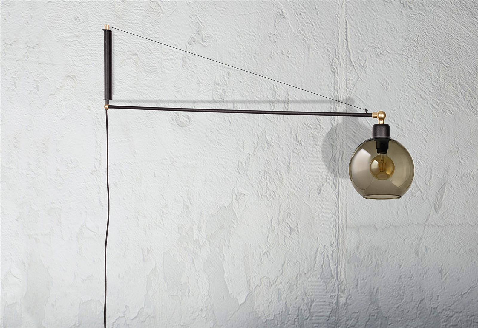 Nowodvorski Kinkiet regulowany z włącznikiem szkło dymione CRANE 9374