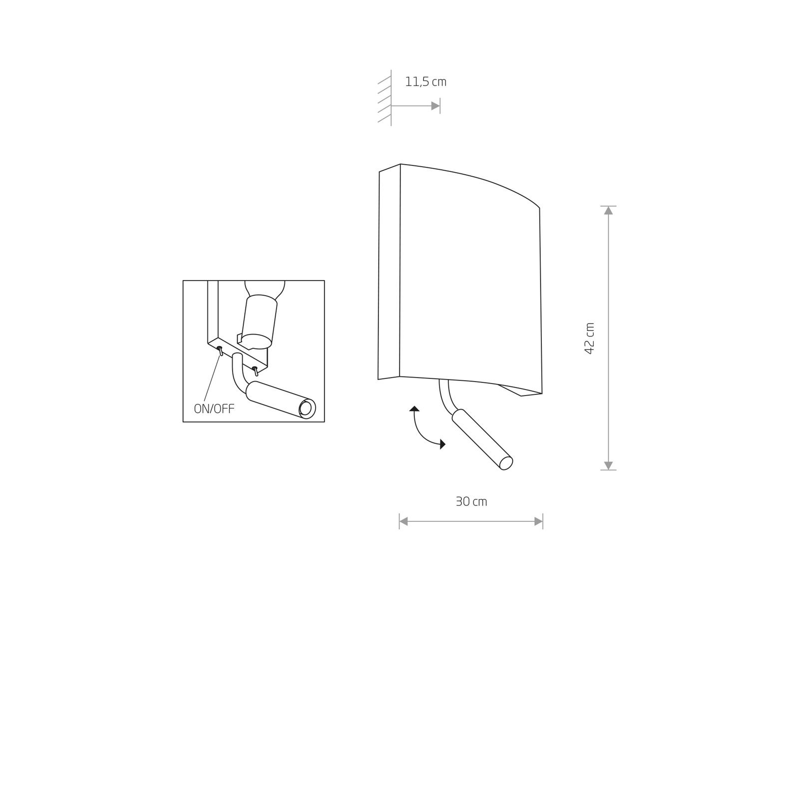 Nowodvorski Kinkiet z włącznikiem szary BORDE