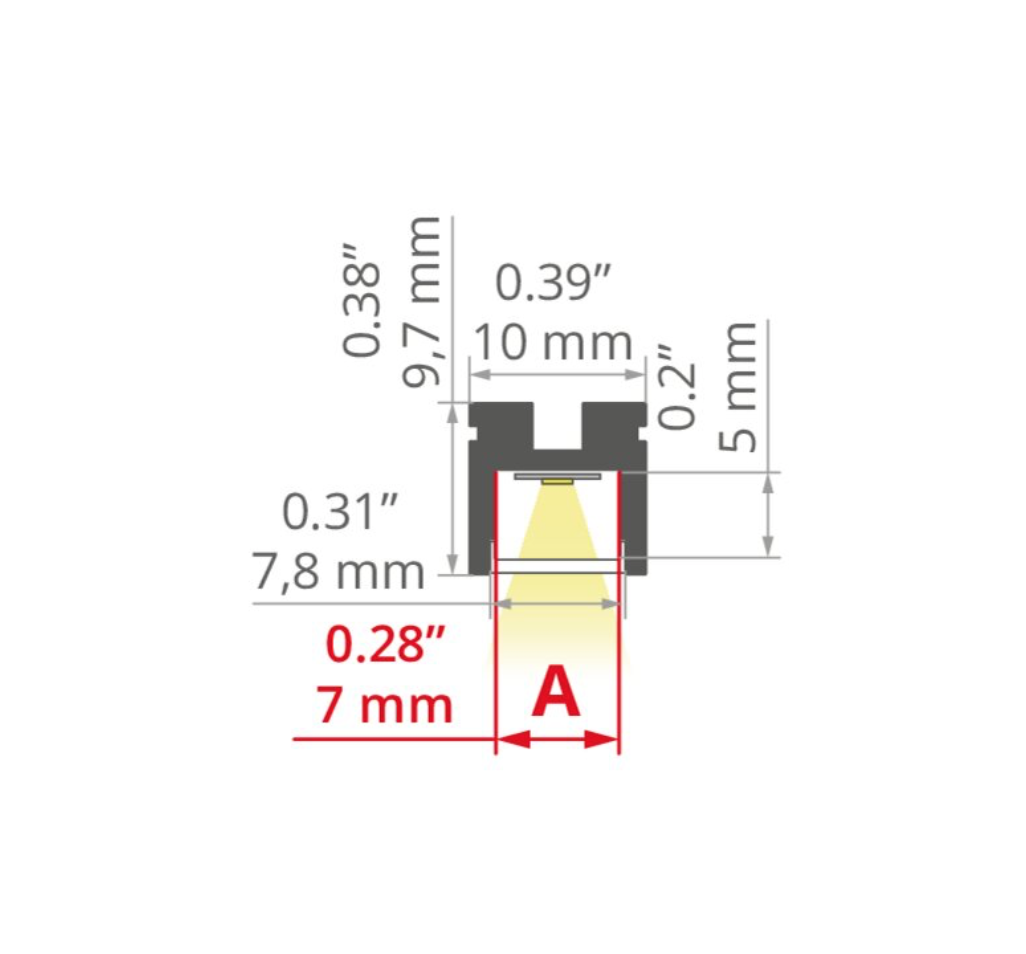 minimalny promień gięcia profilu PIKO-ZM (światło na zewnątrz) 120mm