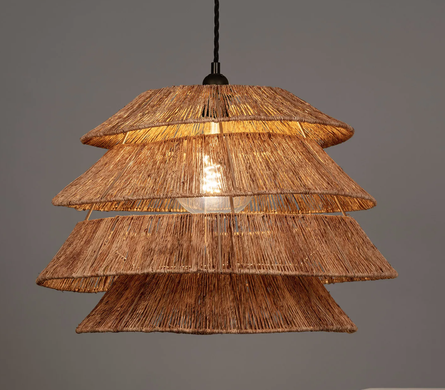 ,Lampa Wisząca z Juty Aymara, która zapewnia najwyższej jakości wykończenia. Ze względu na kształt i materiały, lampę możesz powiesić w otoczeniu w stylu naturalnym, śródziemnomorskim lub boho-chic. Ta lampa jest wykonana z juty, włóknistej rośliny, która po wysuszeniu i obróbce wykazuje doskonały poziom odporności i elastyczności. Możesz umieścić lampę wiszącą Aymara w tak różnych przestrzeniach, jak salony, jadalnie, sypialnie, restauracje lub lokale komercyjne.