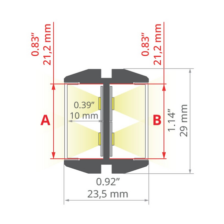 ,Profil GIZA-DUO-LL to produkt przeznaczony do tworzenia dekoracyjnych aranżacji świetlnych. Wyróżnia się łatwością tworzenia figur geometrycznych z możliwością świecenia w dwóch kierunkach. Profil przewidziany jest dla jednej lub dwóch taśm LED o szerokości 10 mm (na jedną stronę profilu). Zastosowanie dwóch taśm pozwala na uzyskanie równomiernego rozświetlenia osłony na całej jej szerokości (na jednej stronie profilu).