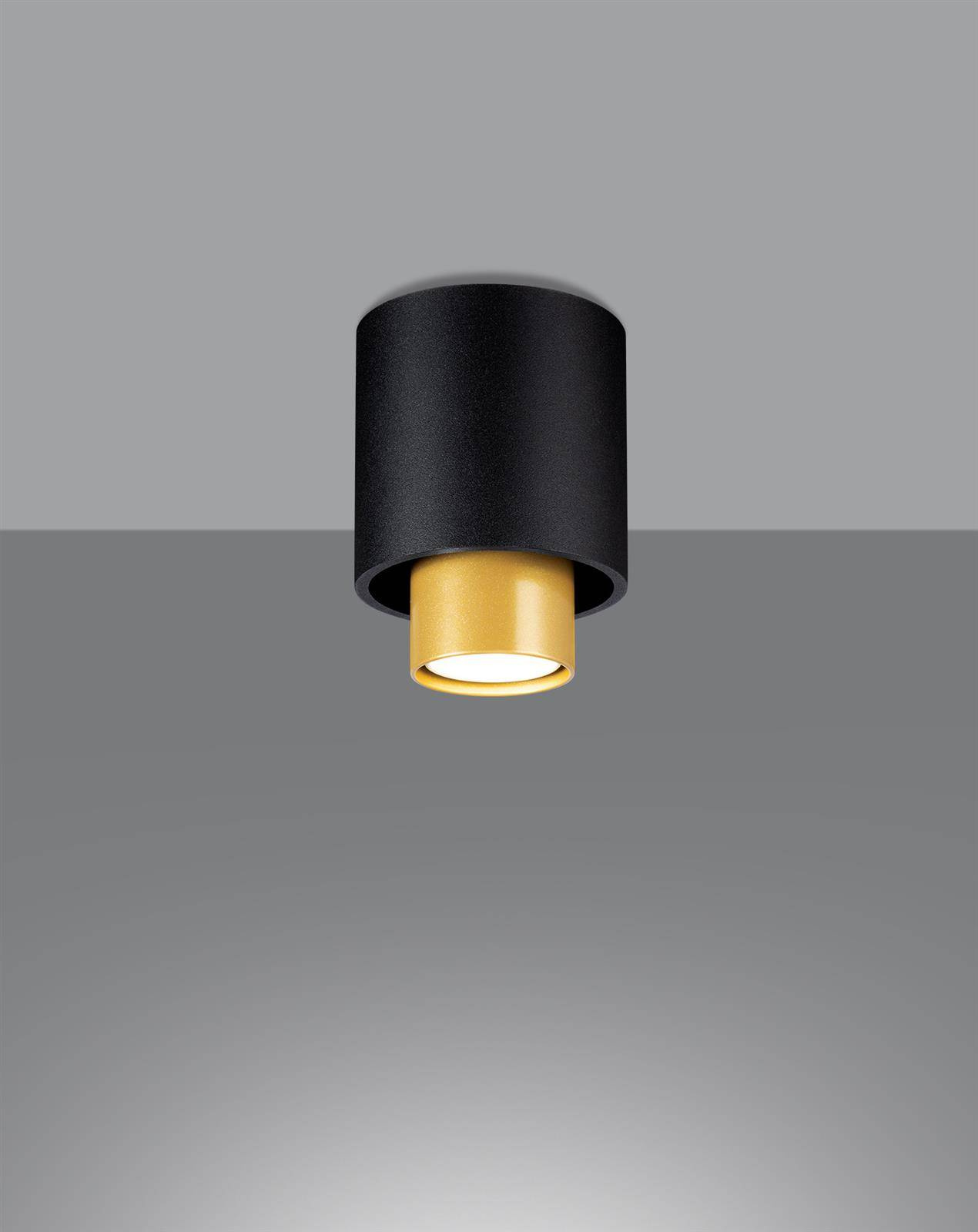 - Źródło światła: GU10, 1x40W, 1x12W LED, 50-60Hz, ~220-230V, IP20, klasa ochronności IŹródło światła nie jest w komplecie. Wymiary: 10/10/14 cmMateriał: stalKolor: czarny, złoty