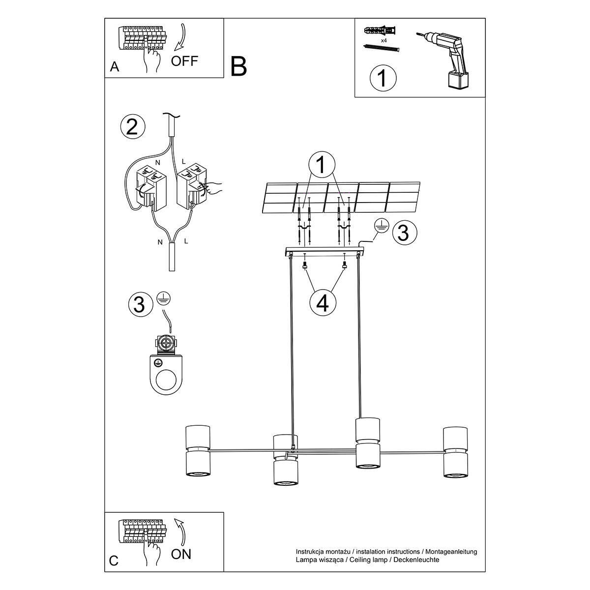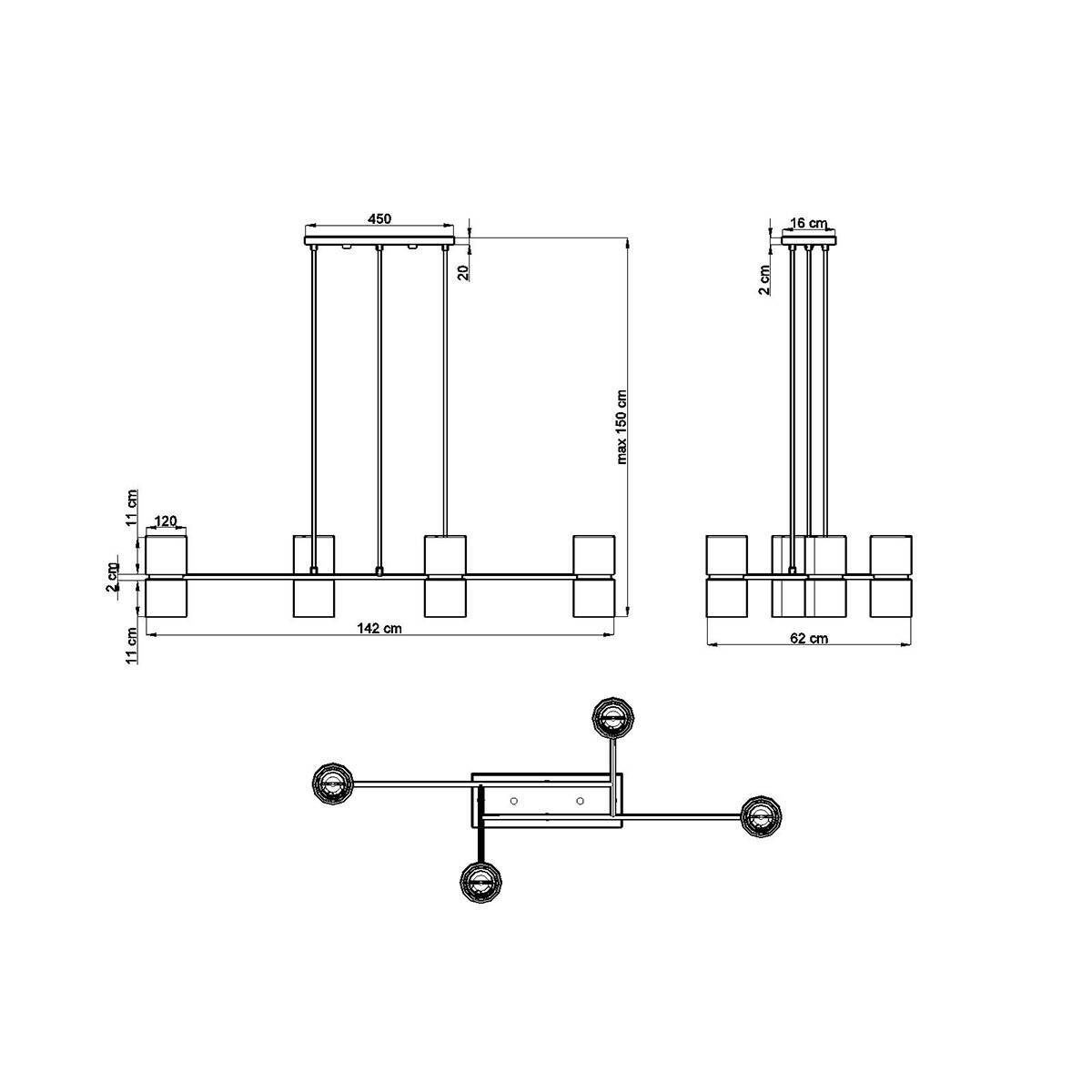 - Źródło światła: GU10/ES111, 4x40W, 4x12W LED, 50-60Hz, ~220-230V, IP20, klasa ochronności I Źródło światła nie jest w komplecie. Wymiary: 142/62/150 cmMateriał: stal, aluminium Kolor: czarny