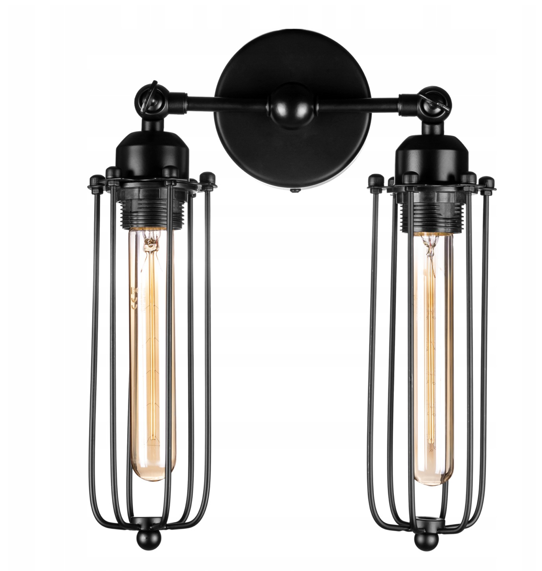 Metalowy kinkiet czarny 2 x E27 T30 rustykalny