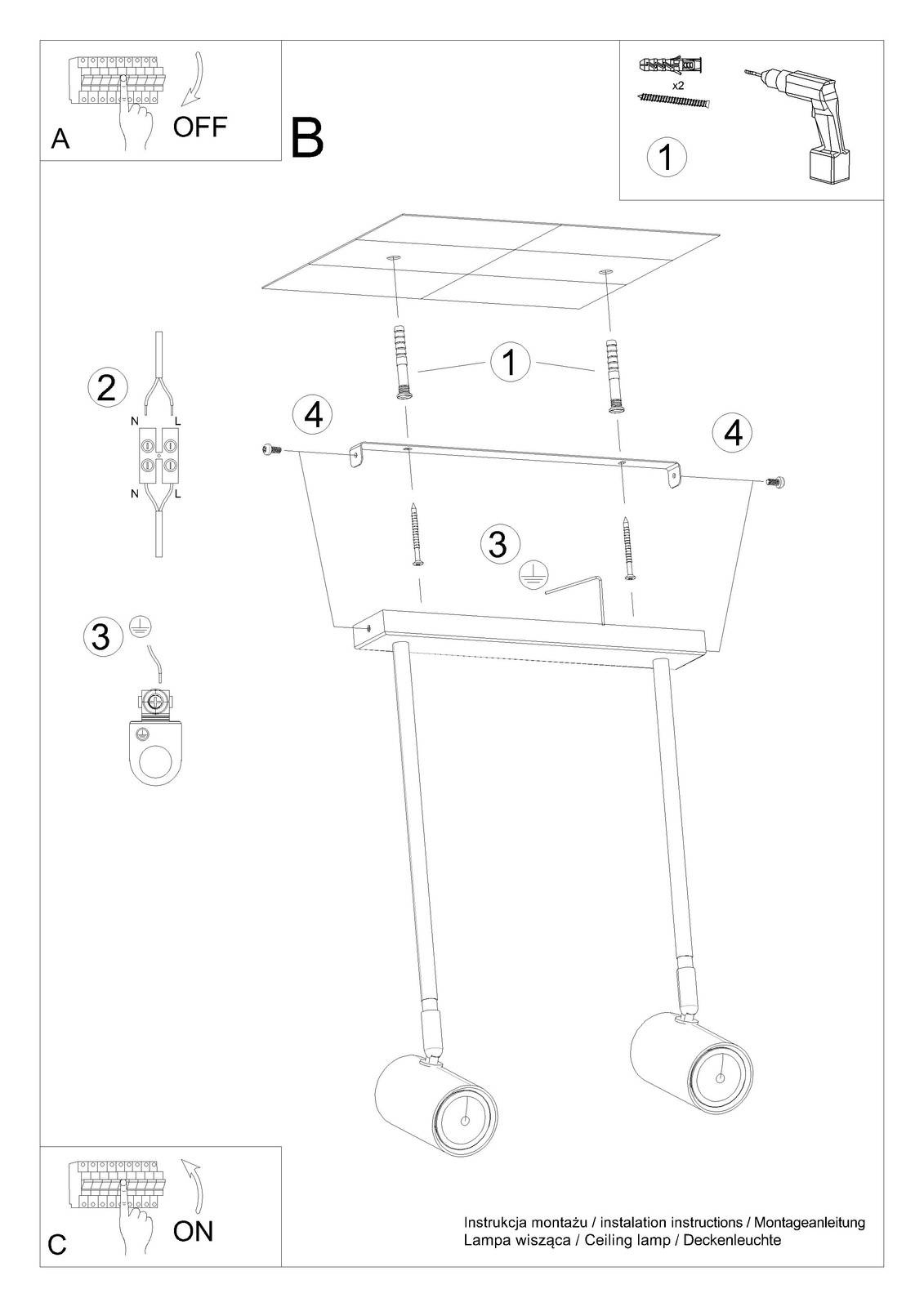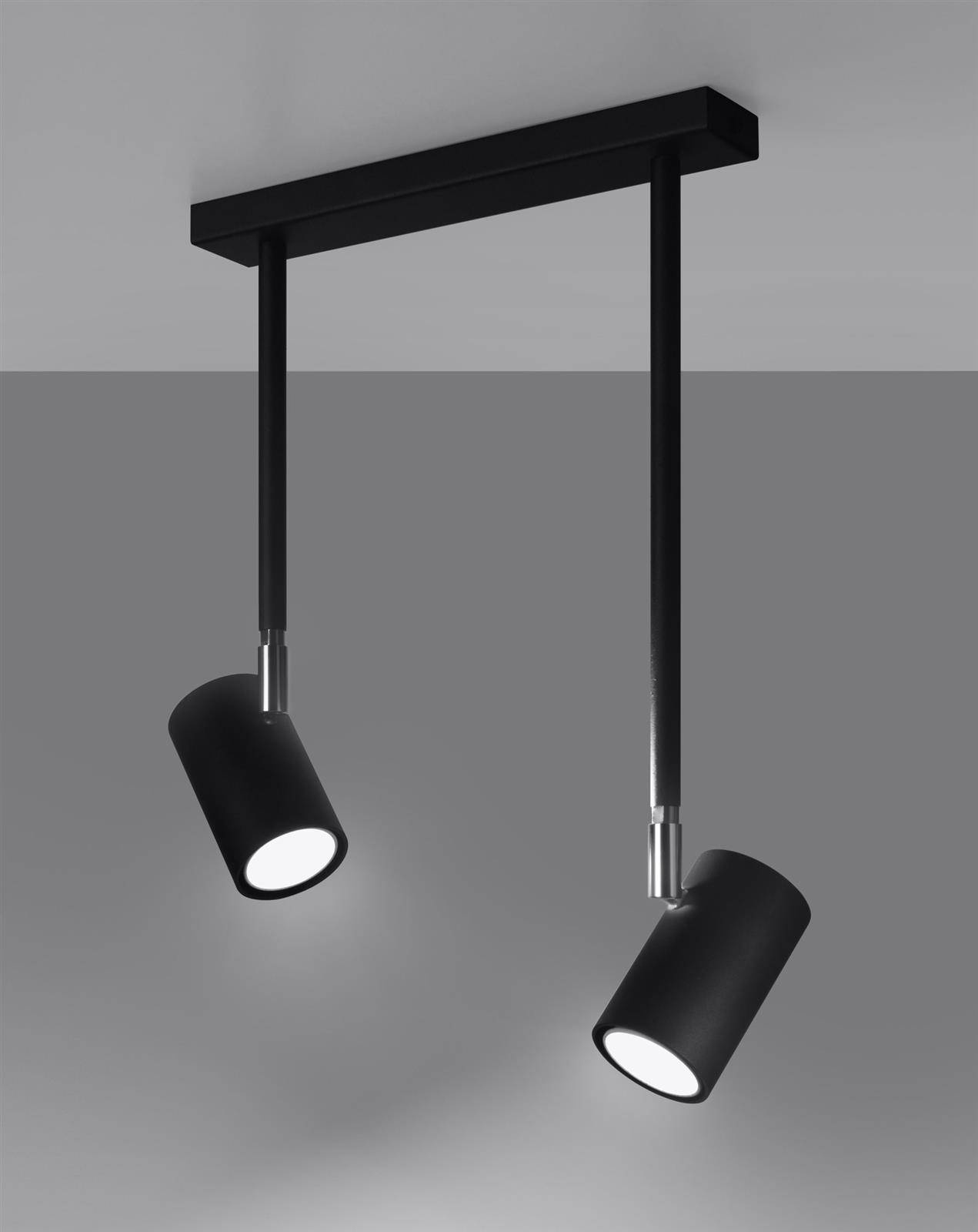 - Źródło światła: GU10, 2x40W, 2x12W LED, 50-60Hz, ~220-230V, IP20, klasa ochronności I Źródło światła nie jest w komplecie. Wymiary: 30/10/43 cm Materiał: stal Kolor: czarny