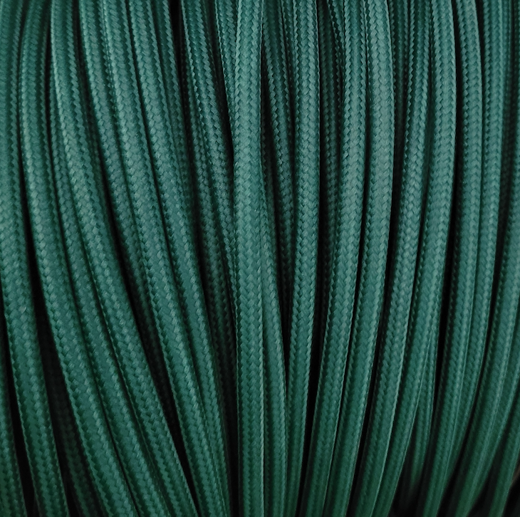 Dekoracyjny kabel w oplocie poliestrowym ciemno zielony dwużyłowy