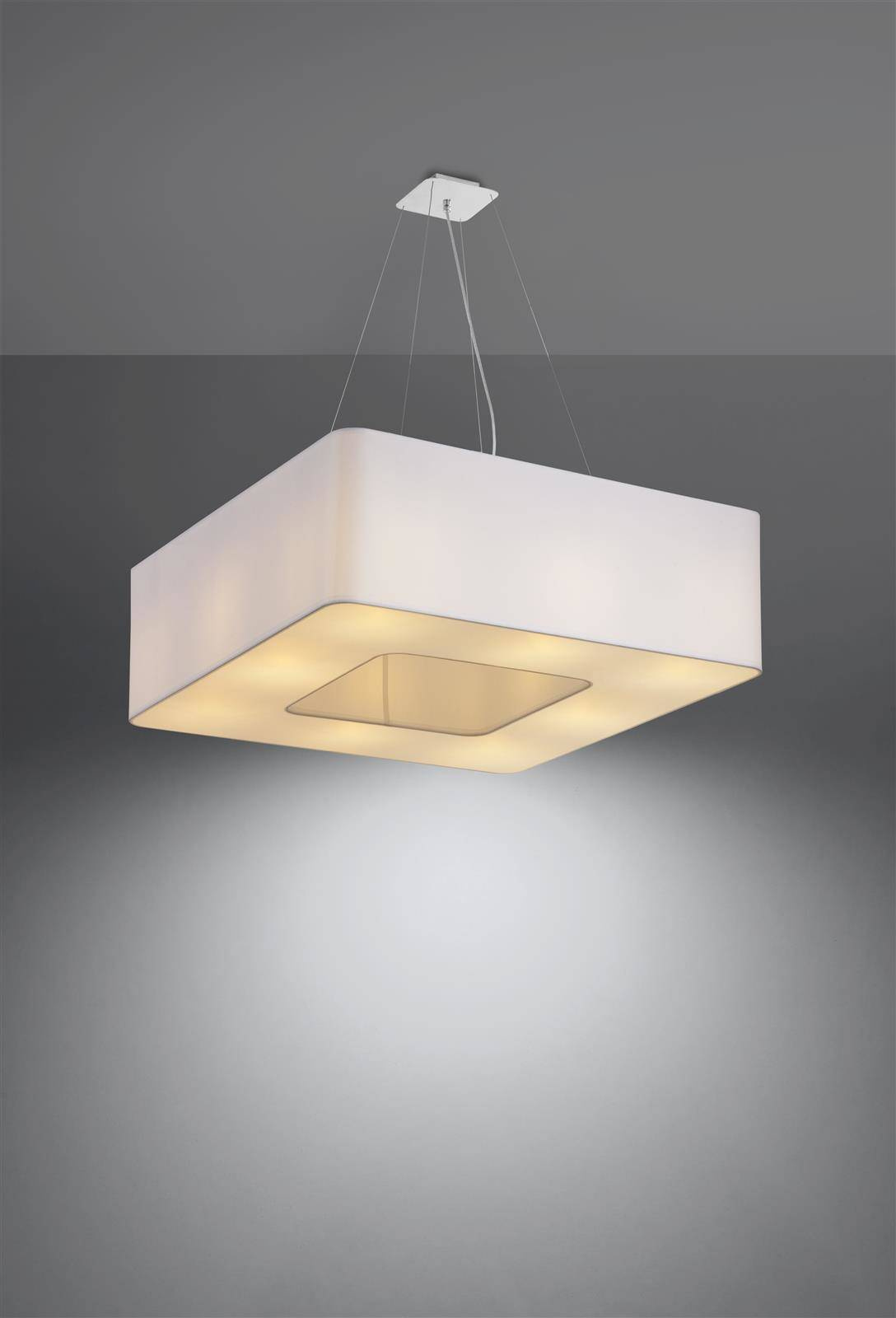 - Źródło światła: E27, 8x60W, 8x15W LED, 50-60Hz, ~220-230V, IP20, klasa ochronności IŹródło światła nie jest w komplecie.Wymiary: 60/60/112 cmWymiary klosza: 60/22 cmMateriał: tkanina, PVC, stalKolor: biały
