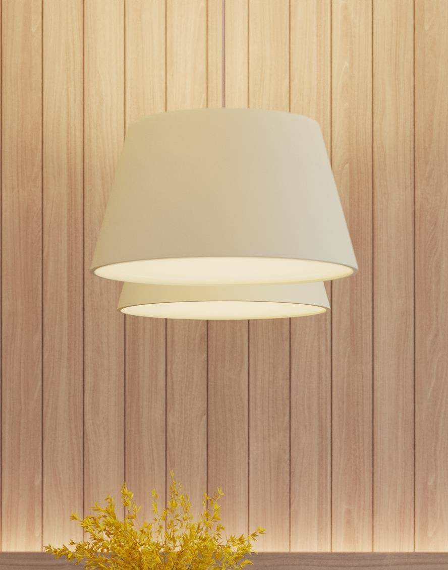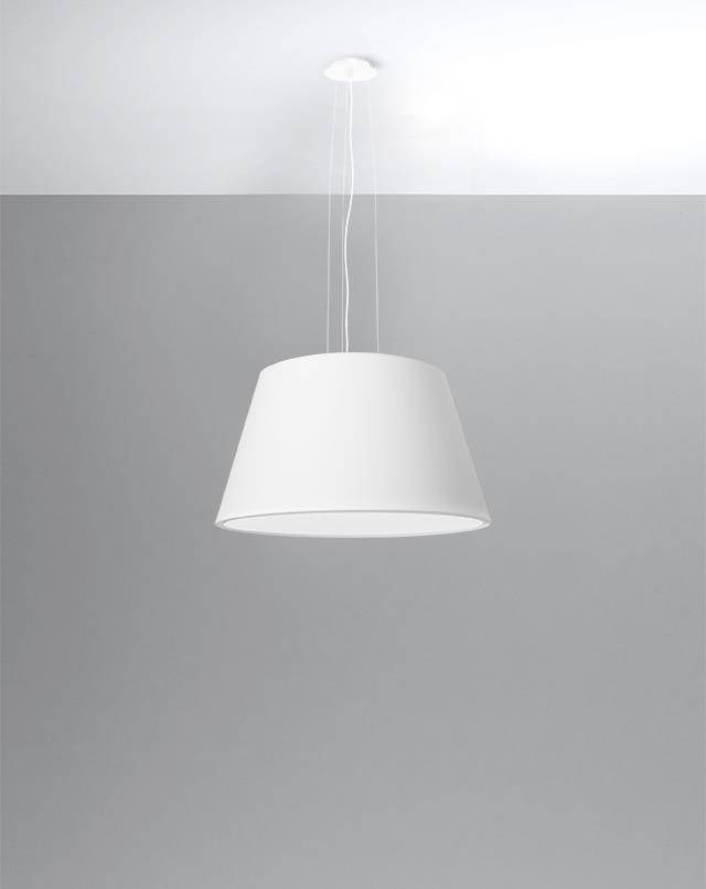 - Źródło światła: E27, 3x60W, 3x15W LED, 50-60Hz, ~220-230V, IP20, klasa ochronności IŹródło światła nie jest w komplecie.Wymiary: 45/45/114 cmWymiary klosza: 45/24 cmMateriał: tkanina, PVC, stalKolor: biały