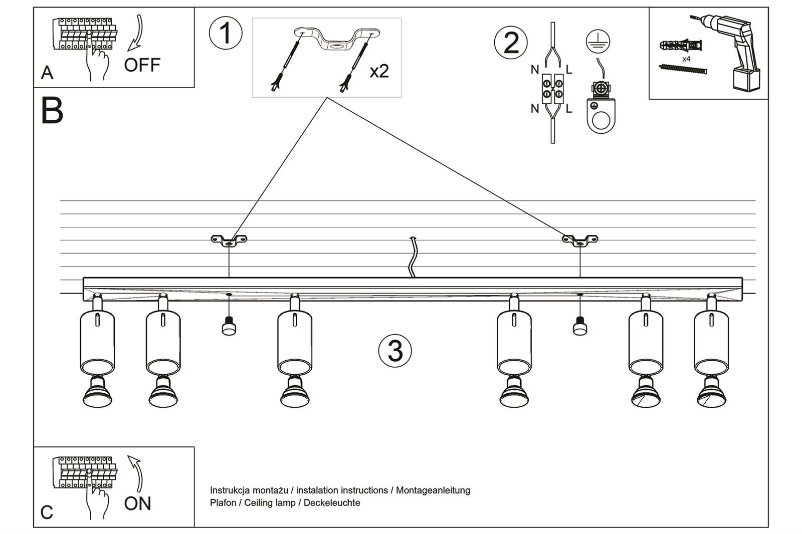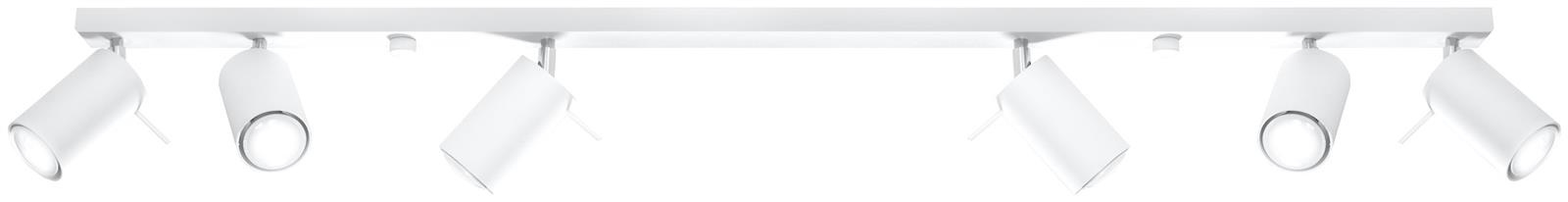 - Źródło światła: GU10, 6x40W, 6x12W LED, 50-60Hz, ~220-230V, IP20, klasa ochronności IŹródło światła nie jest w komplecie.Wymiary: 118/6/16 cmMateriał: stalKolor: biały