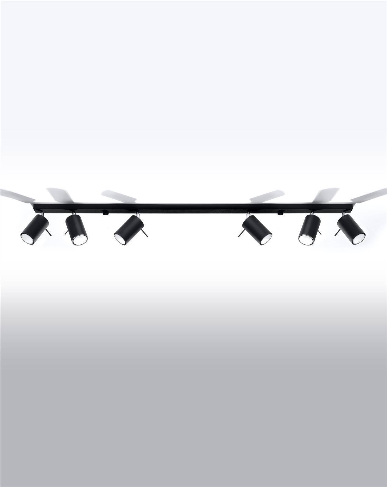 - Źródło światła: GU10, 6x40W, 6x12W LED, 50-60Hz, ~220-230V, IP20, klasa ochronności IŹródło światła nie jest w komplecie.Wymiary: 118/6/16 cmMateriał: stalKolor: czarny